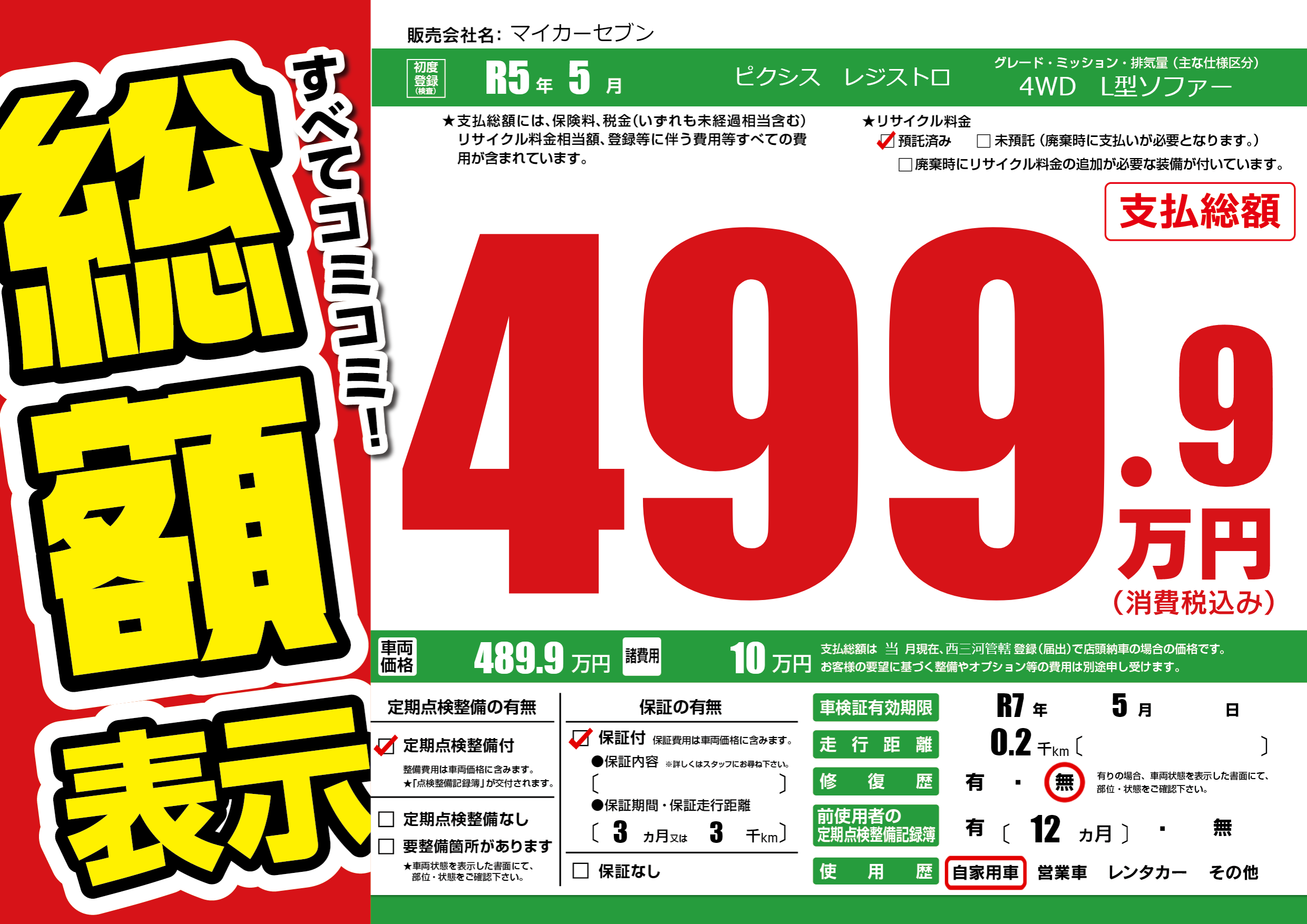 なし | 車検制限 | R7年5月---月 |