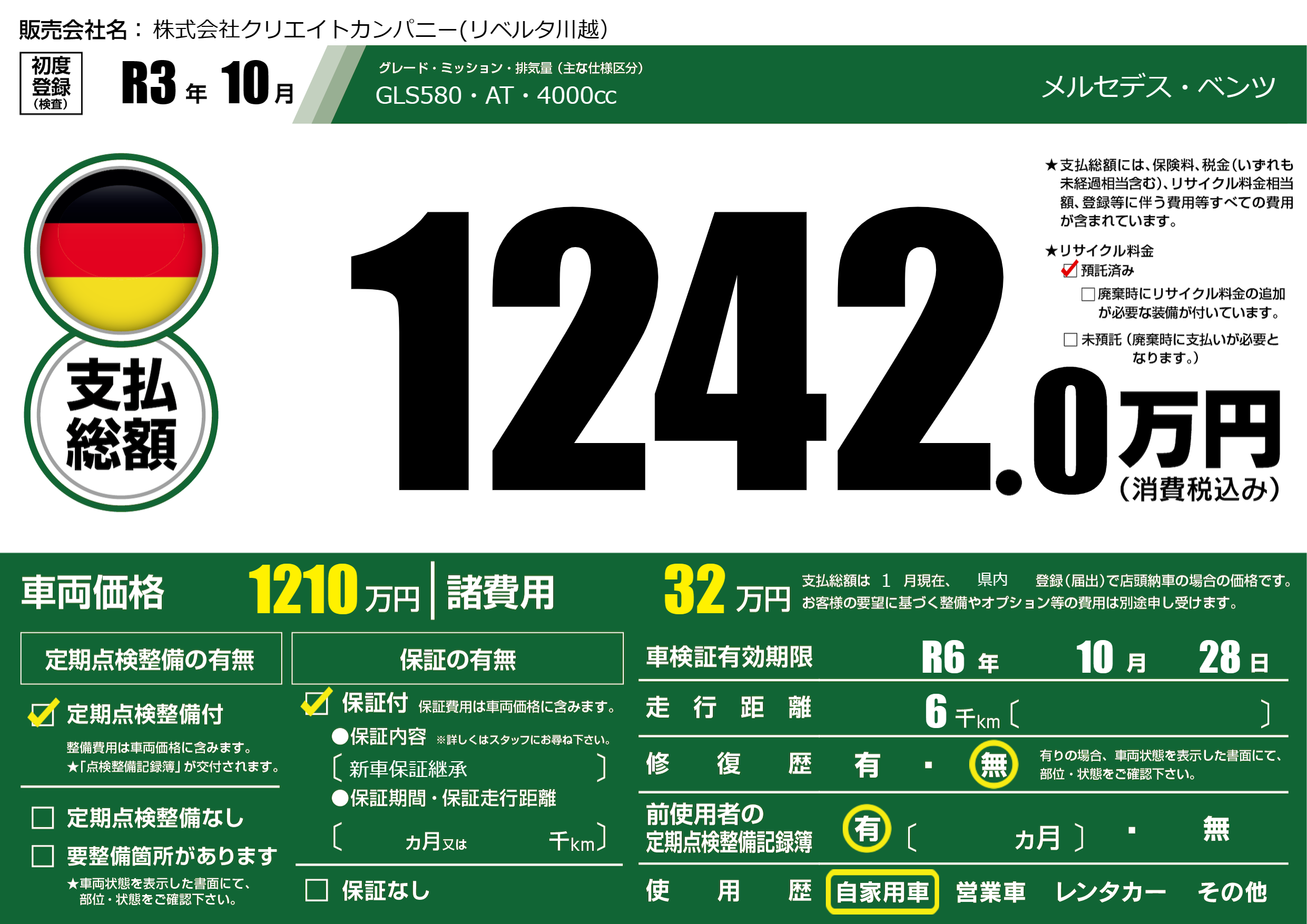 | 車名 | メルセデス・ベンツ | グレード ミッション 排気量 |