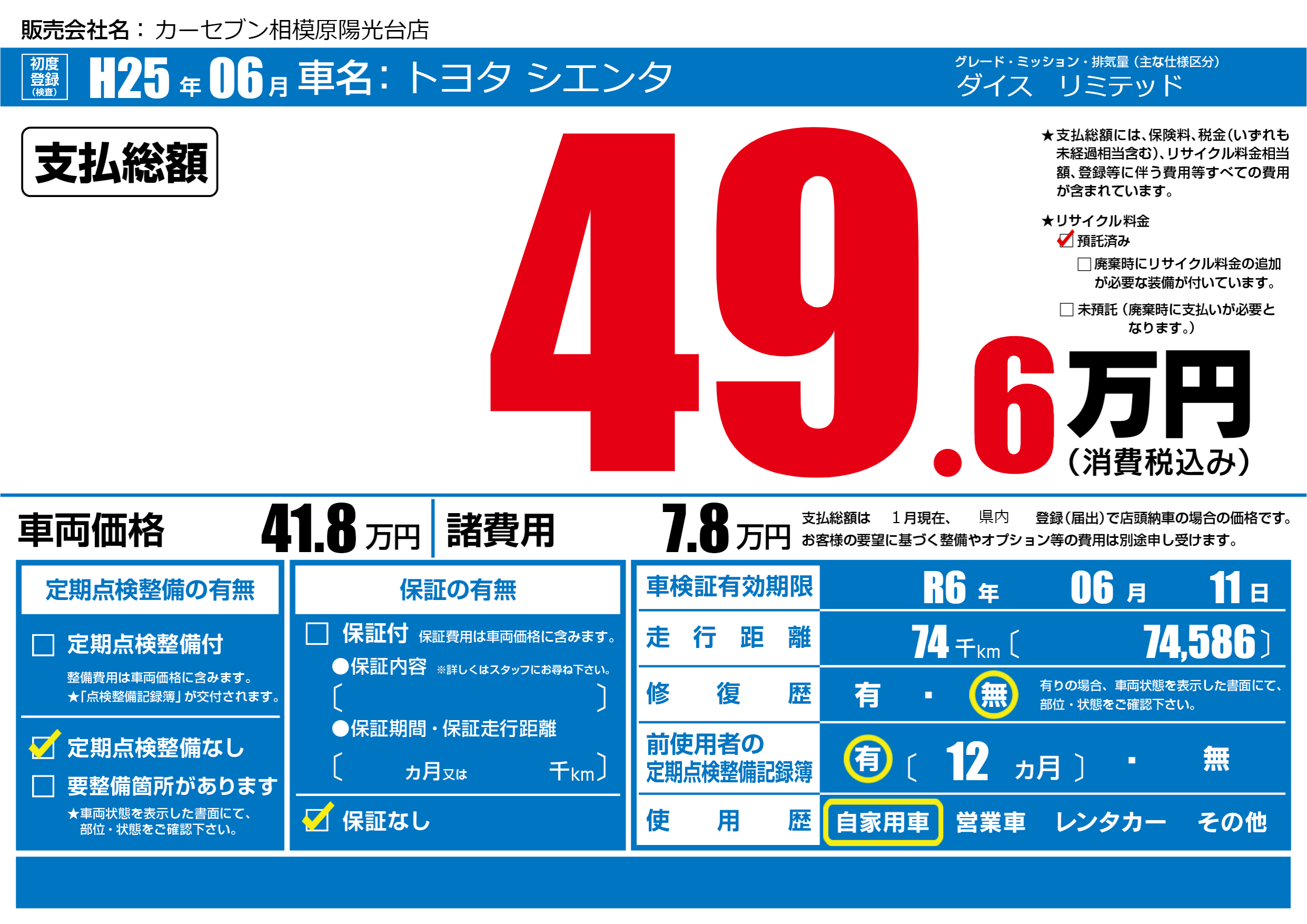 | 定期点検整備 | 定期点検整備なし | ||