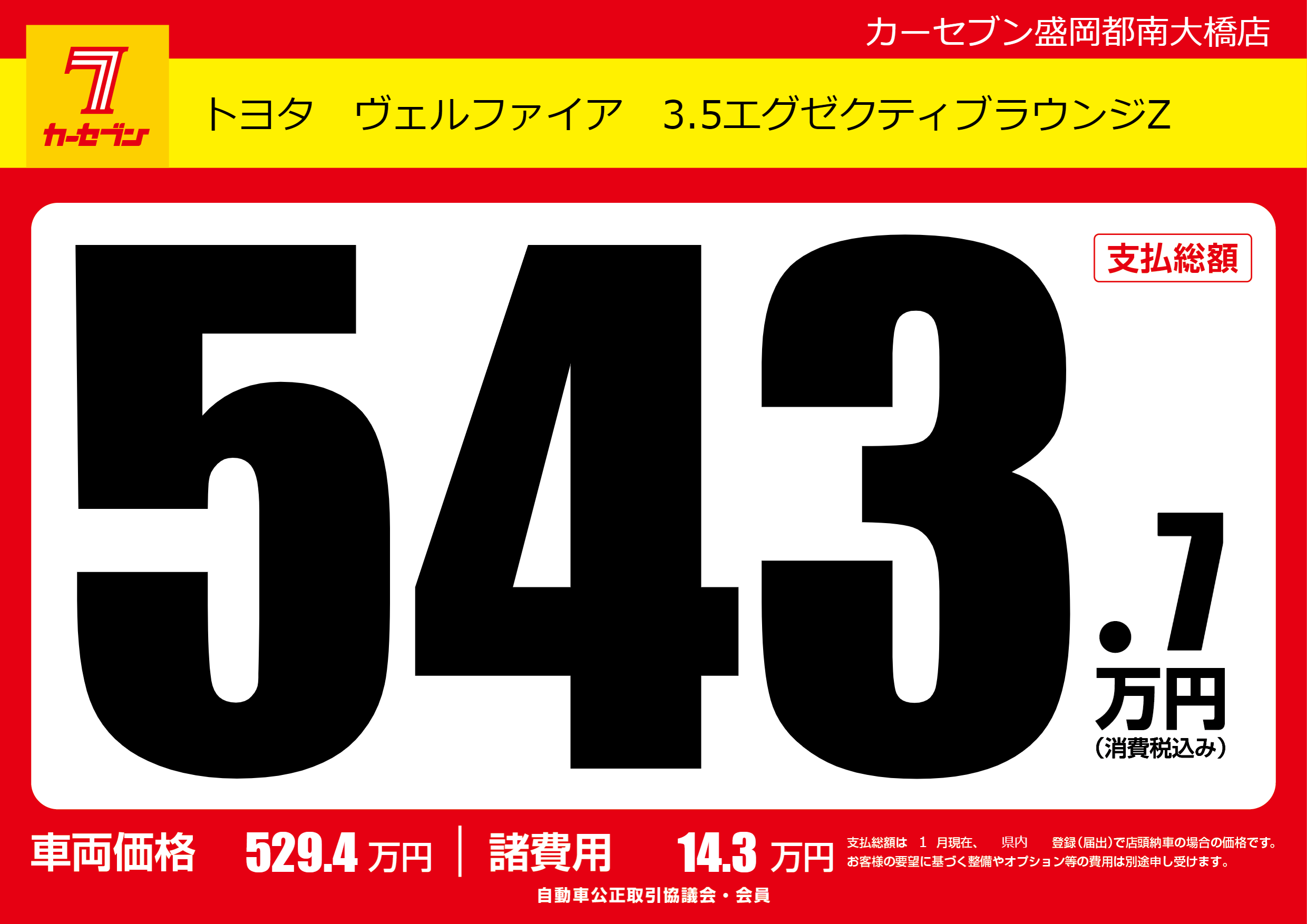 | 車名 | トヨタ ヴェルファイア 3.5エグゼクティブラウンジZ | グレード ミッション 排気量 |