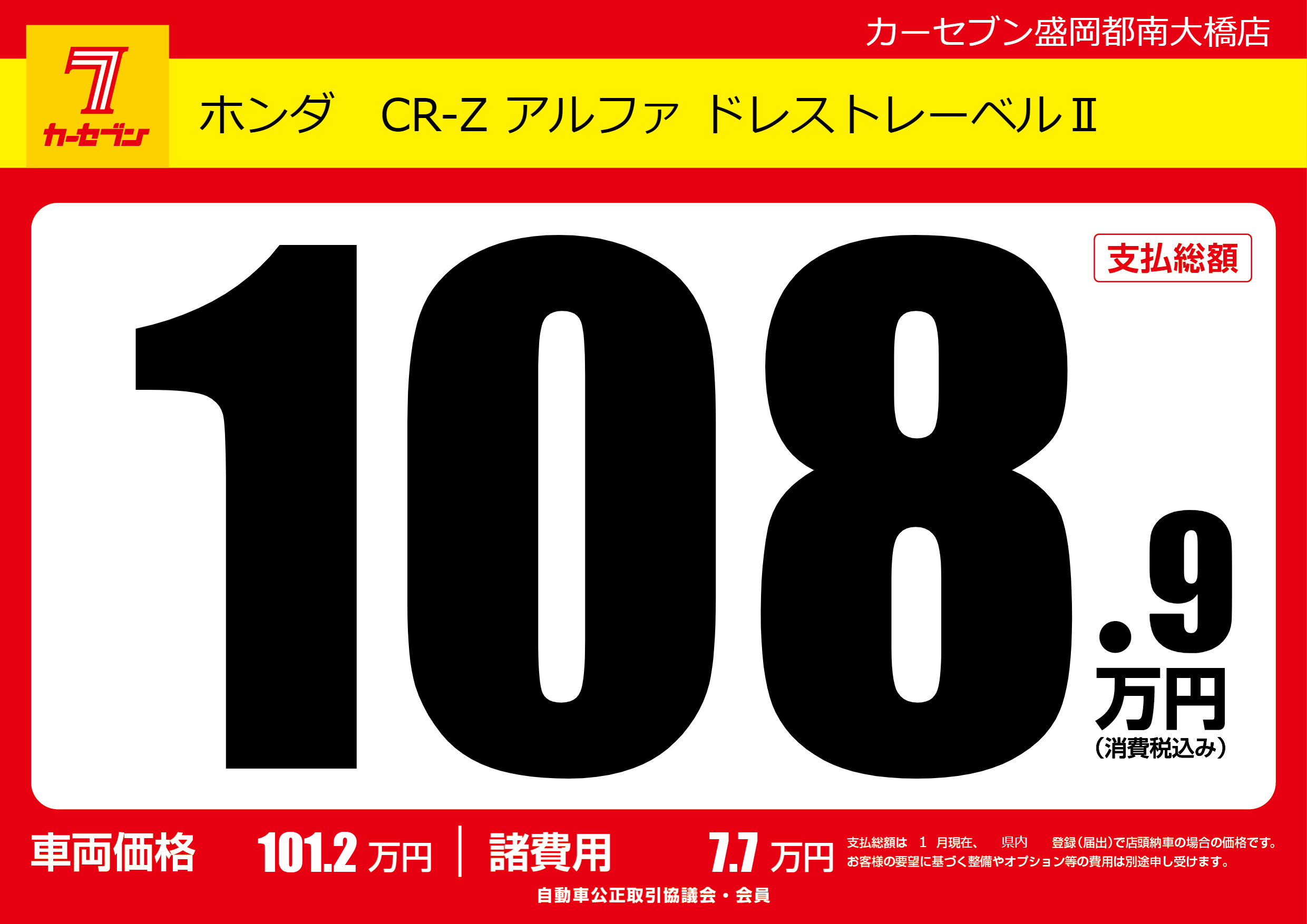 | 車名 | ホンダ CR-Z アルファ ドレストレーベルⅡ | グレード ミッション 排気量 |