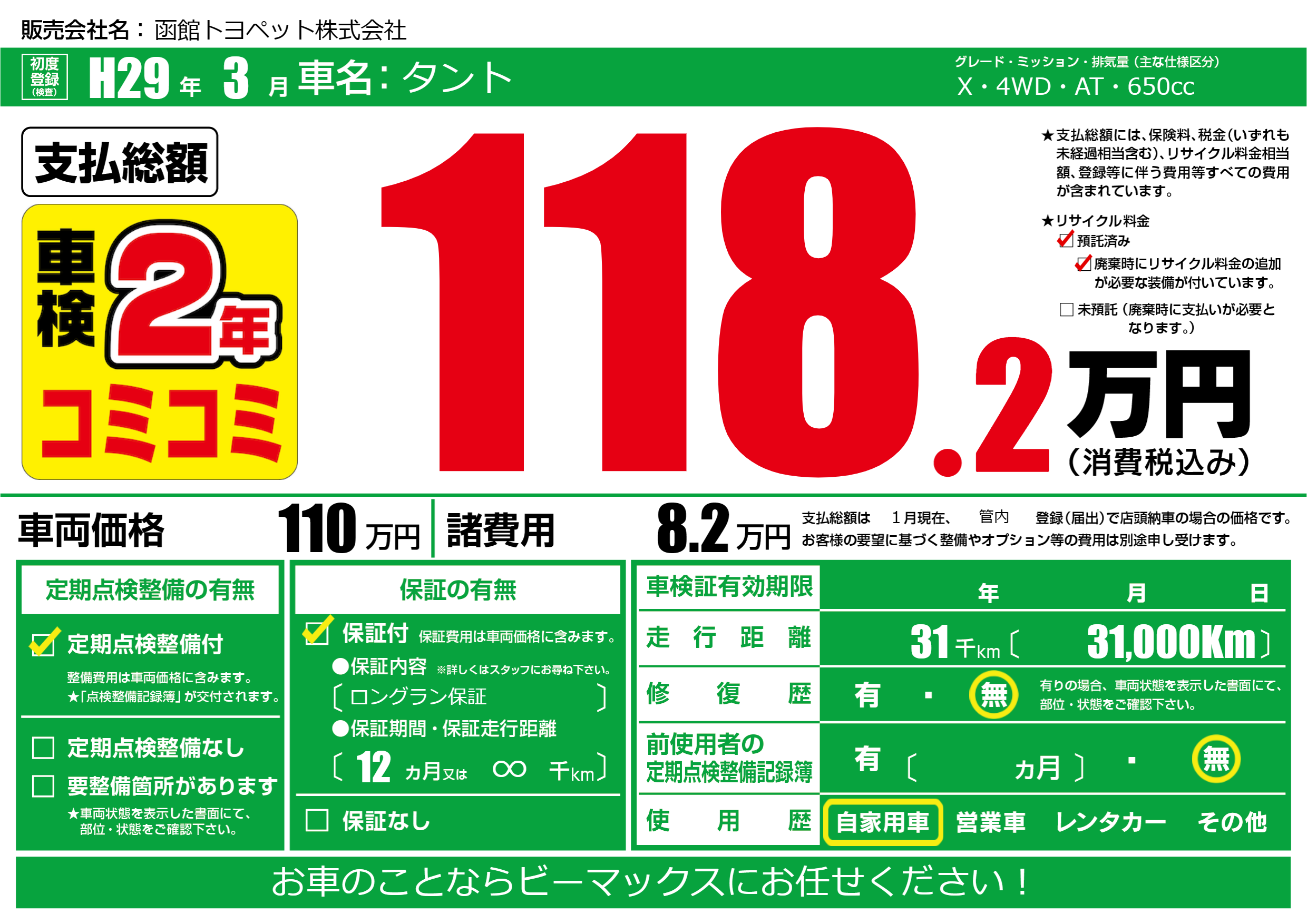 | 定期点検整備 | 定期点検整備あり | ||