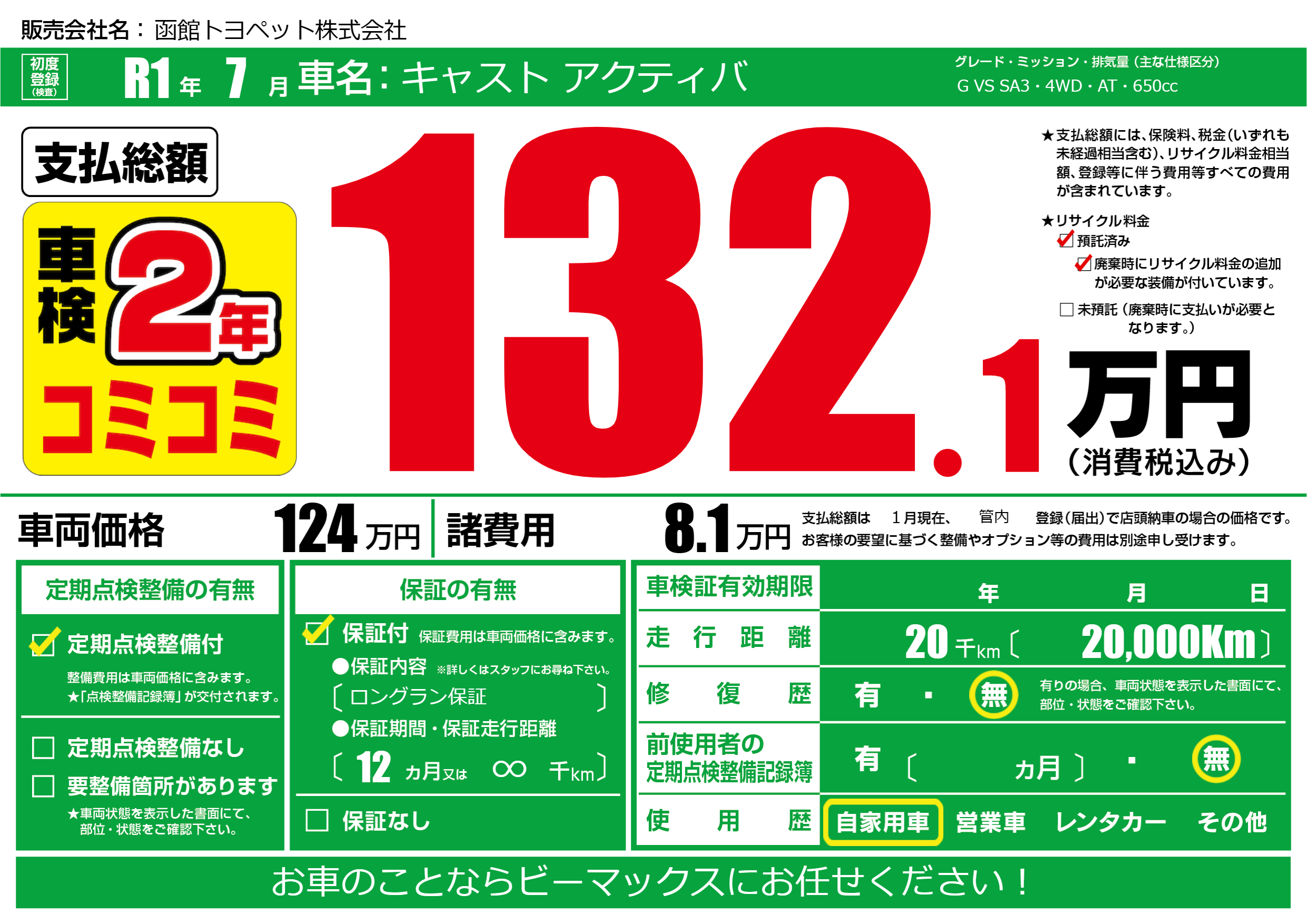 | 定期点検整備 | 定期点検整備あり | ||