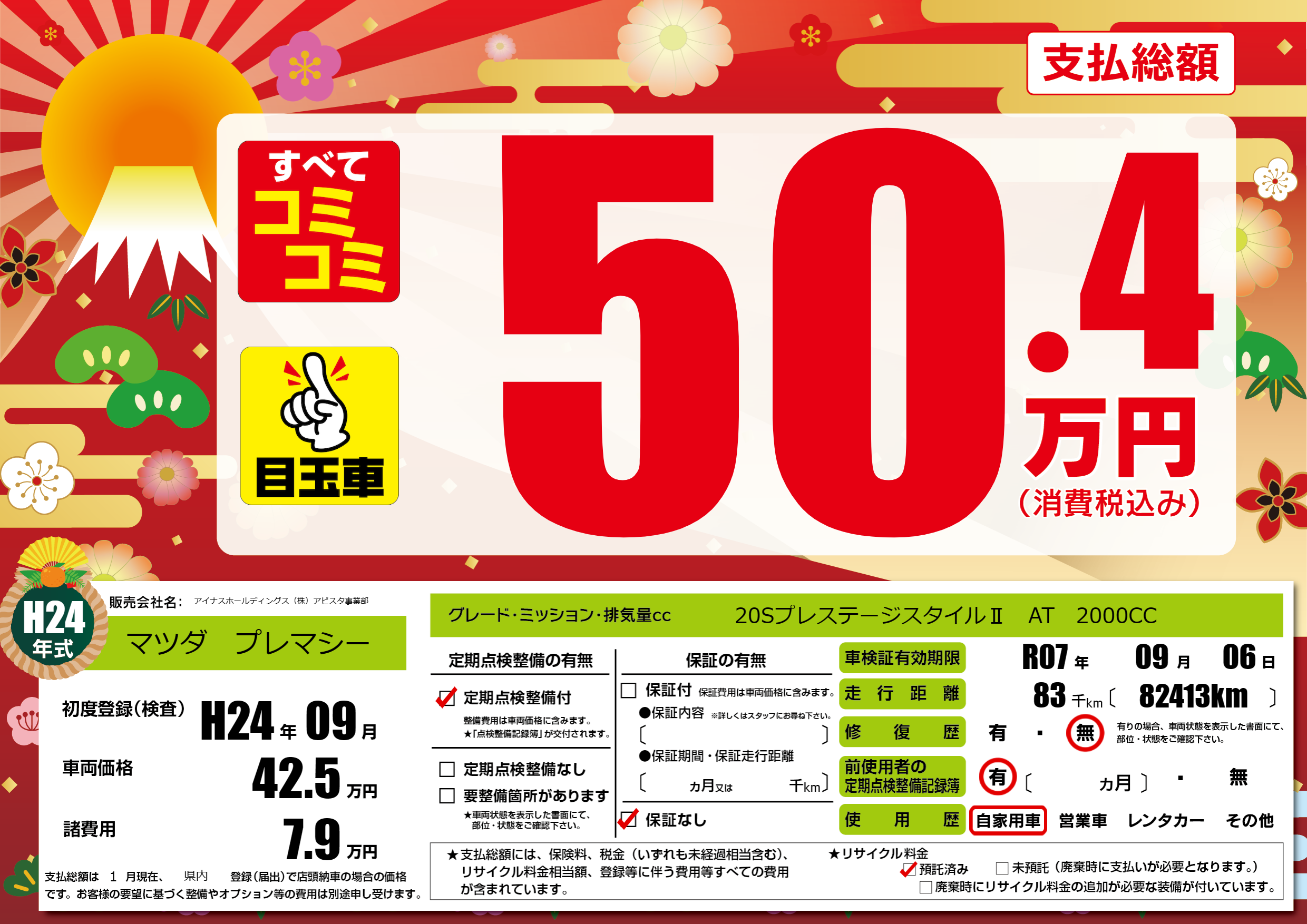 | 車名 | マツダ プレマシー | グレード ミッション 排気量 |