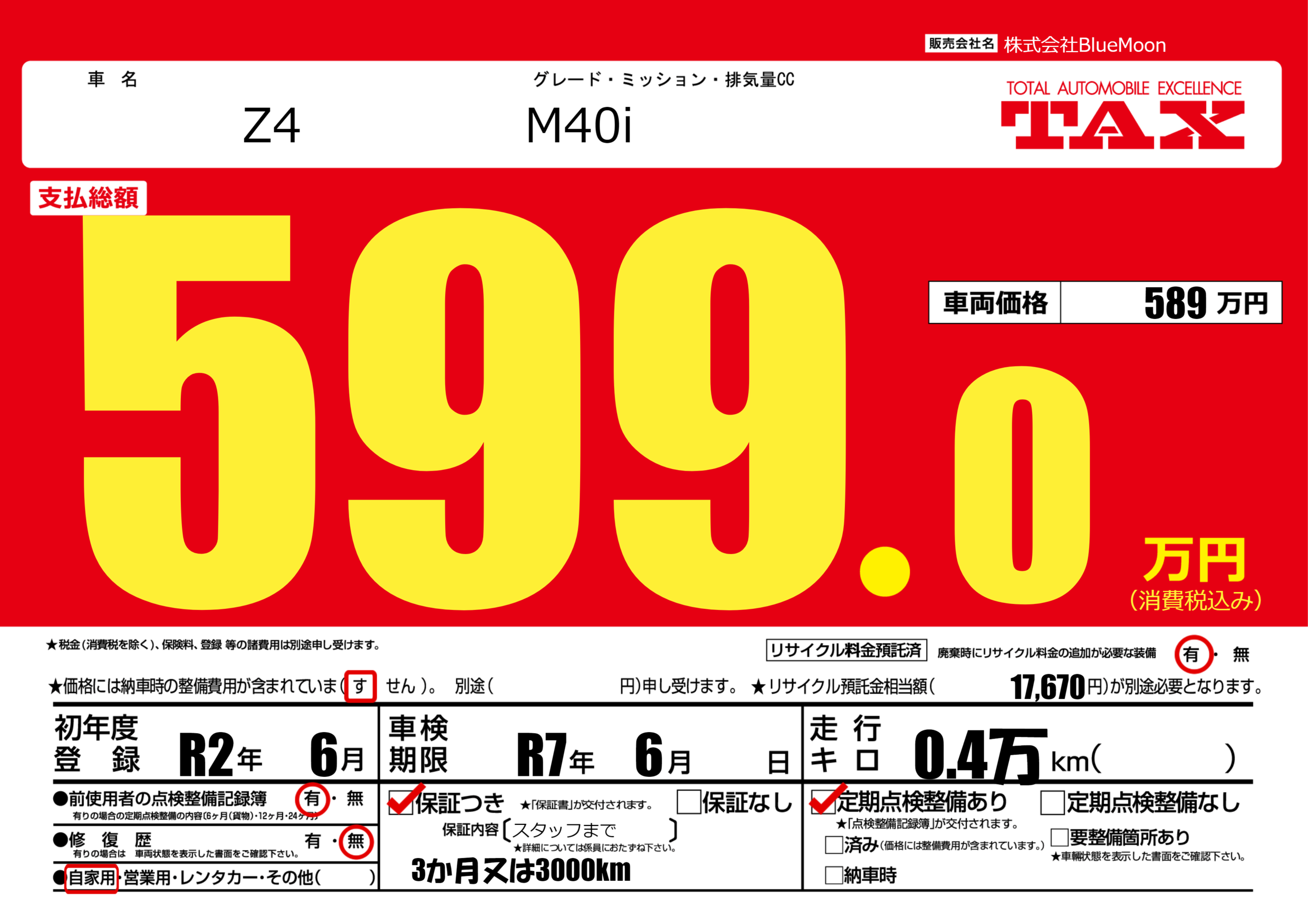 | 車名 | Z4 | グレード ミッション 排気量 |
