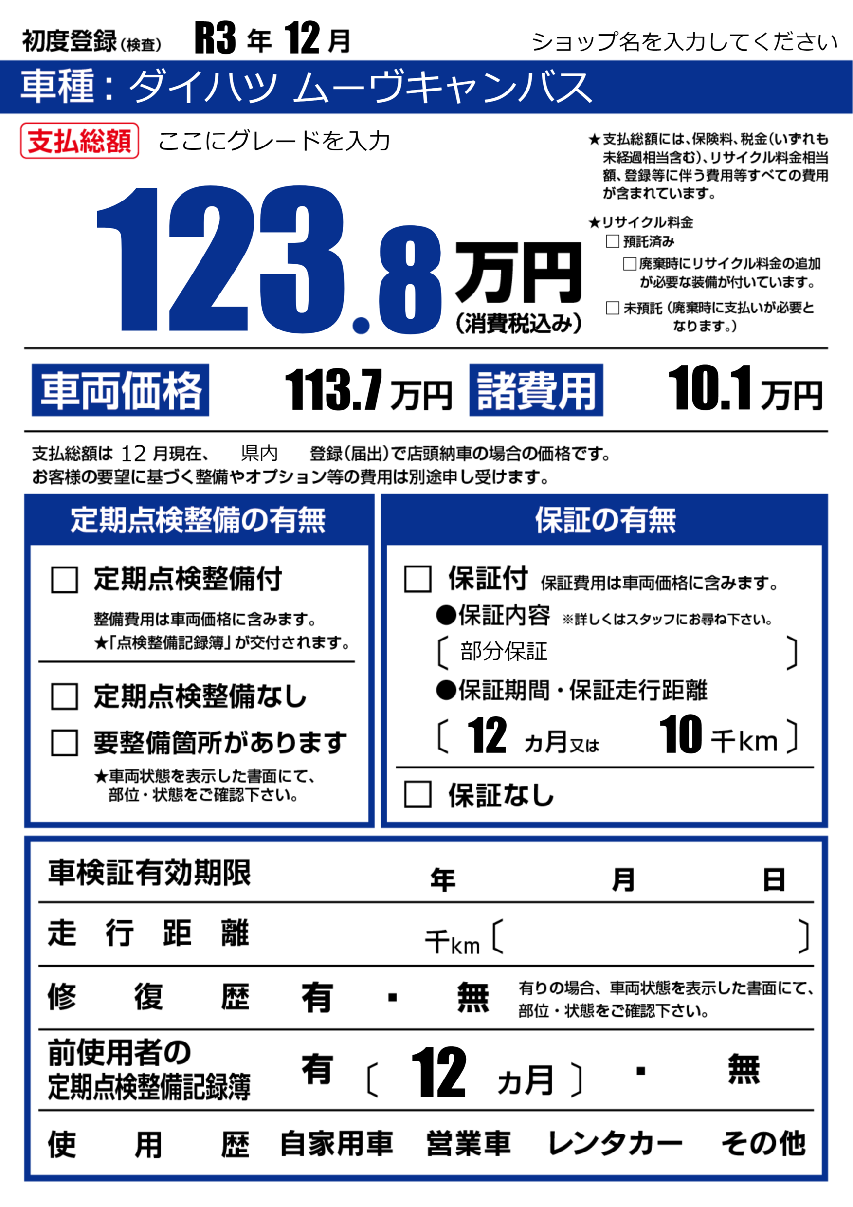 | 走行キロ | - | 初年度登録 | R3年12月 |