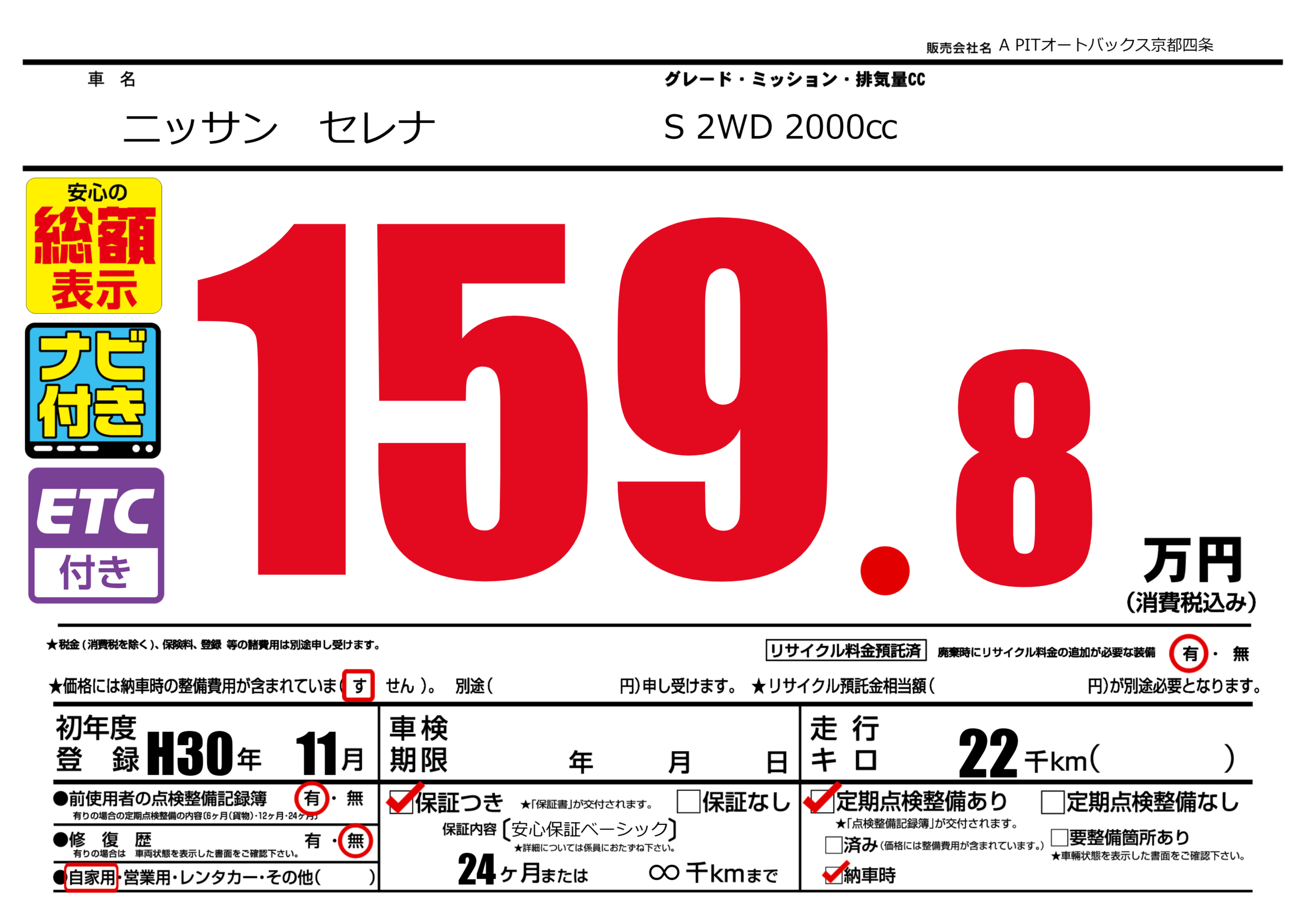 | 定期点検整備 | 定期点検整備あり 納車時あり | ||