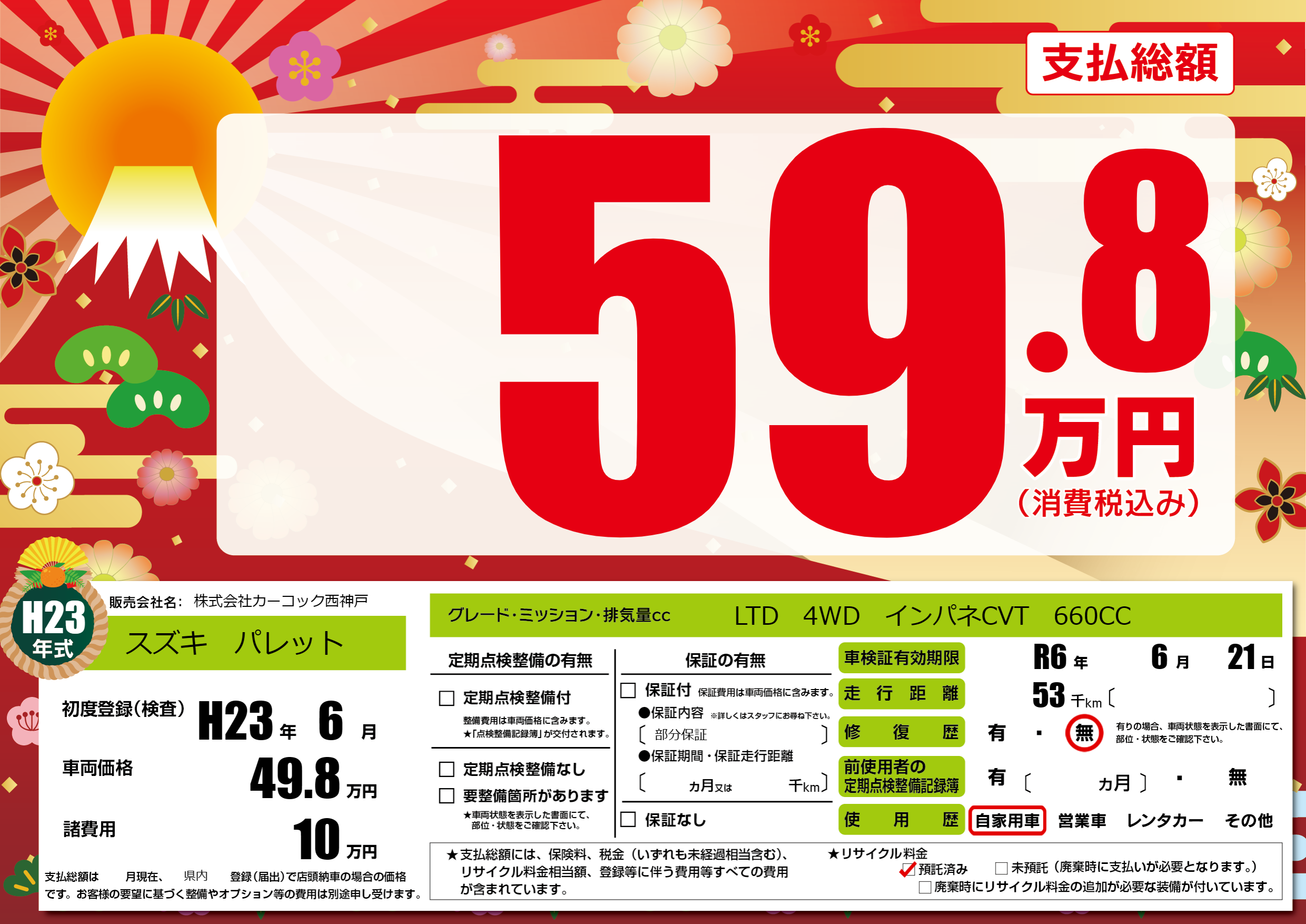 | 走行キロ | 5.3万km | 初年度登録 | H23年6月 |