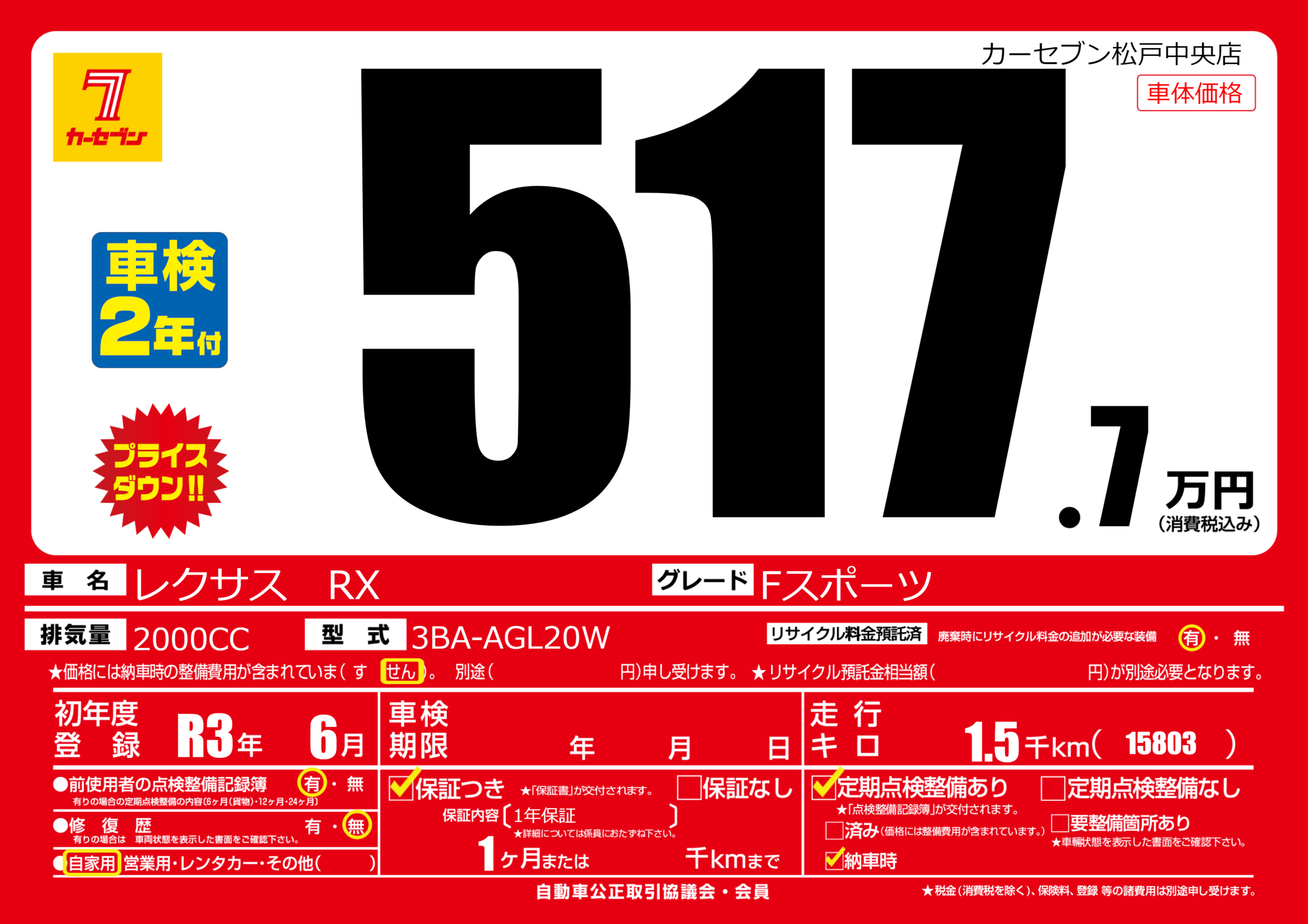 | 車検制限 | - 年 - 月 - 日 | ||