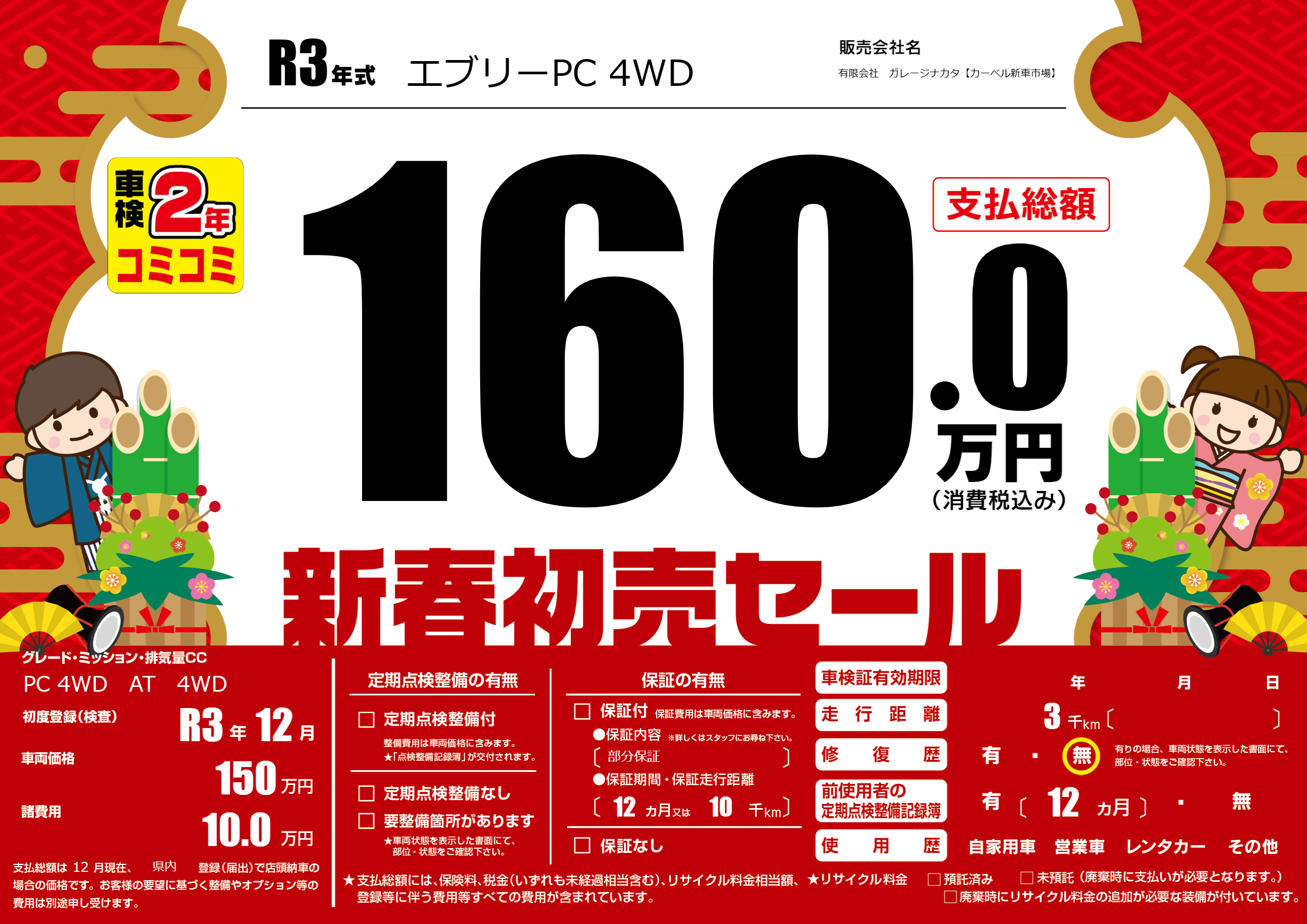 | 車名 | エブリーPC 4WD | グレード ミッション 排気量 |