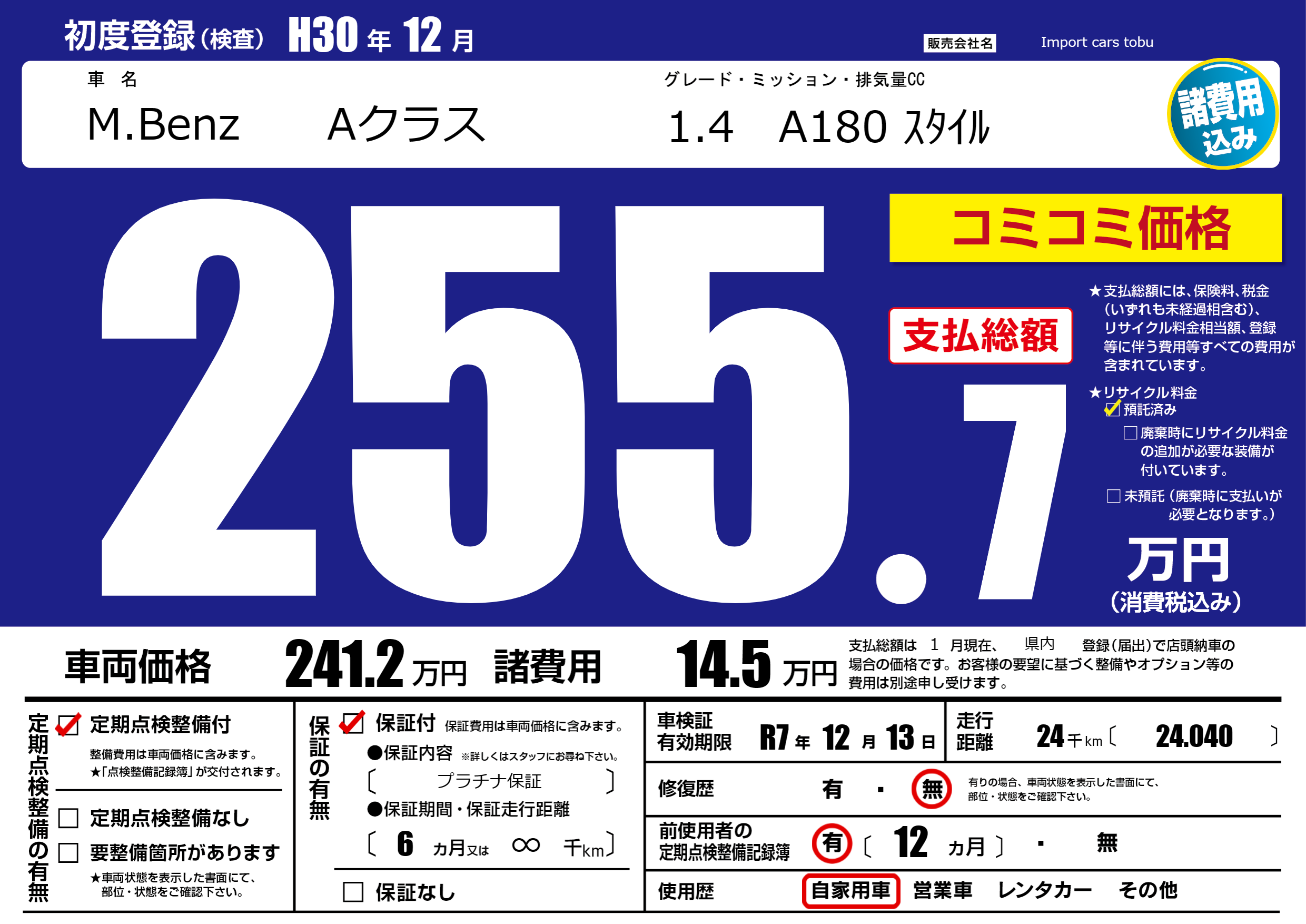 | 車検制限 | R7年 12月 13日 | ||