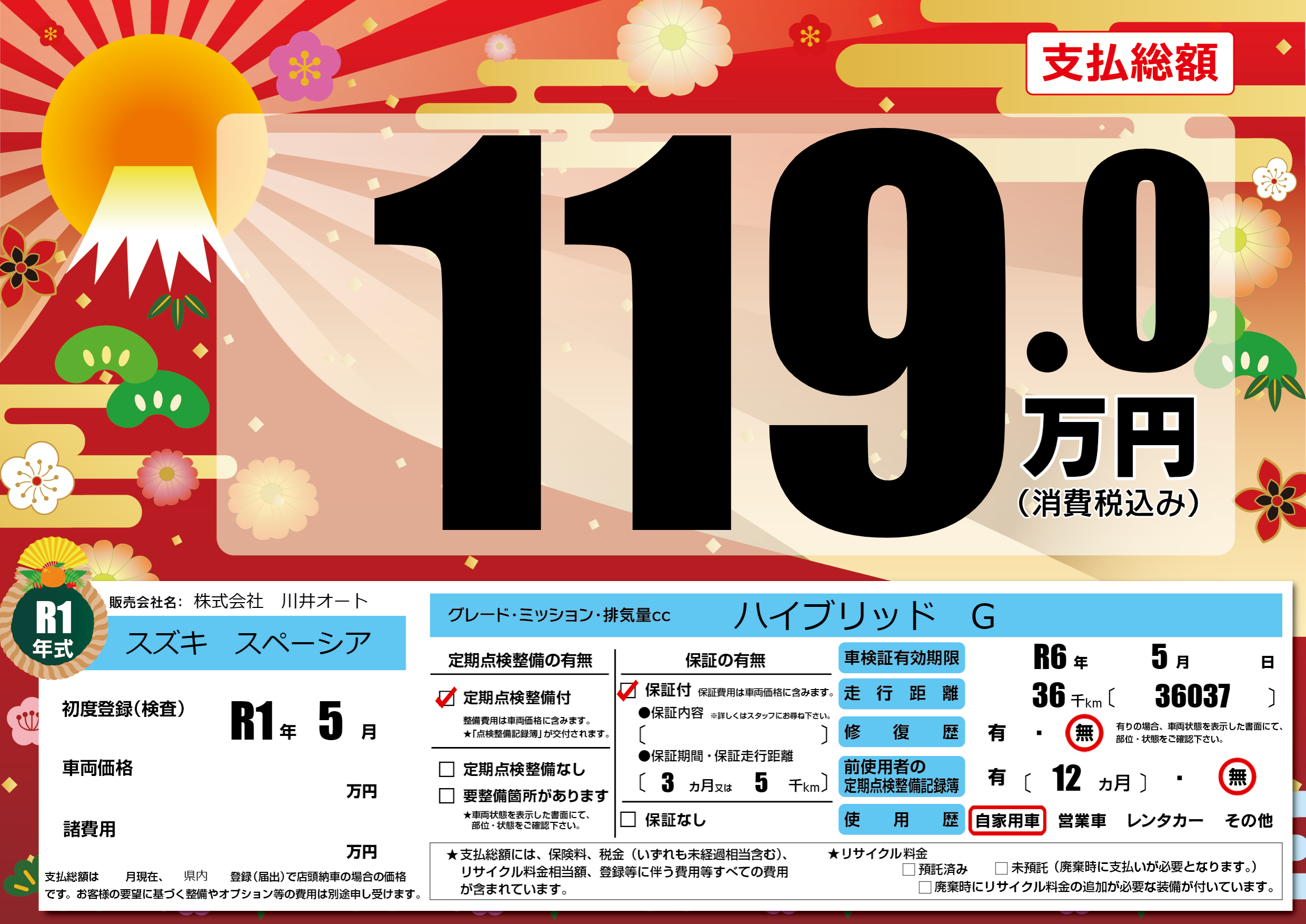 なし | 車検制限 | R6年5月---月 |
