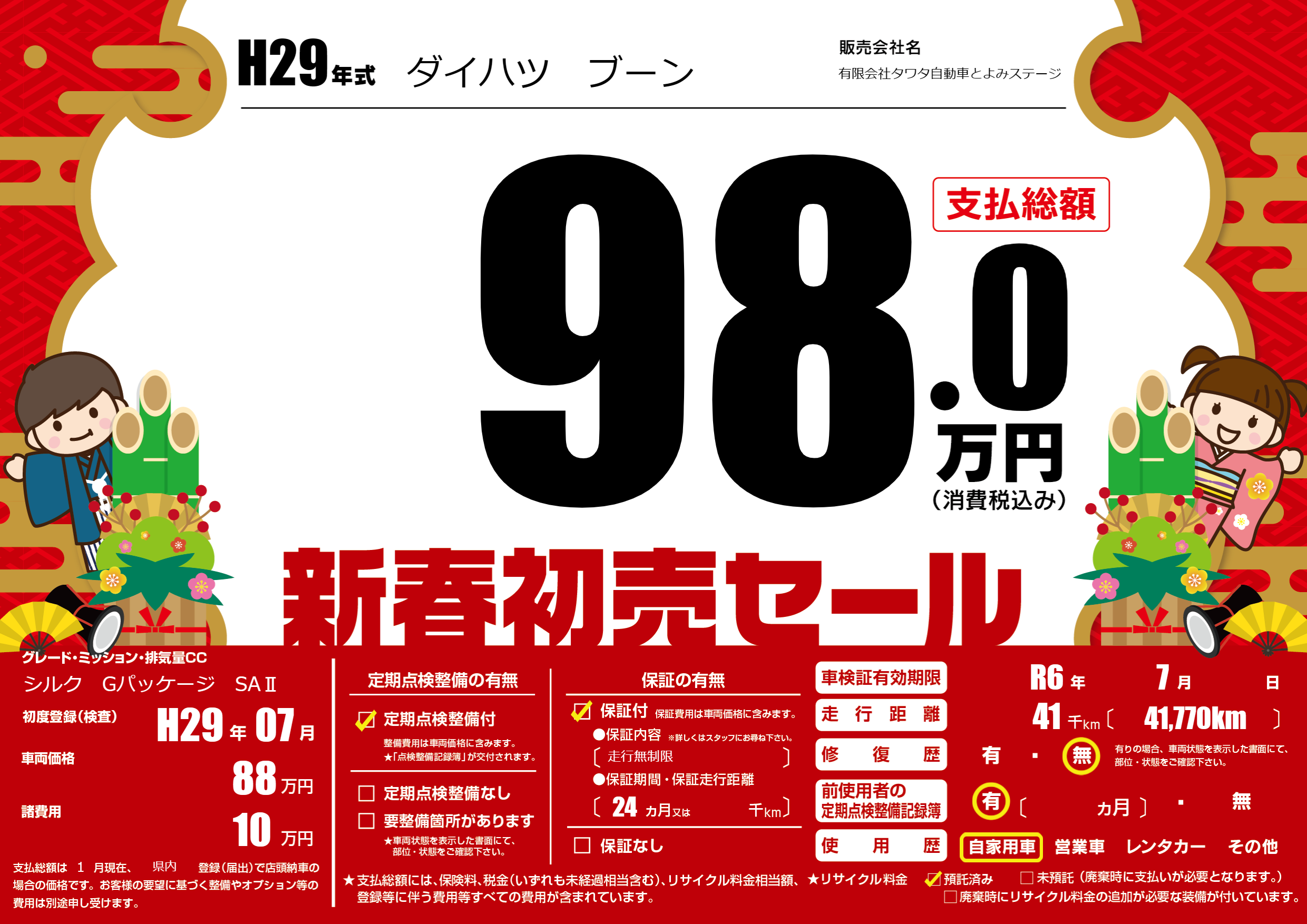 | 車名 | ダイハツ ブーン | グレード ミッション 排気量 |