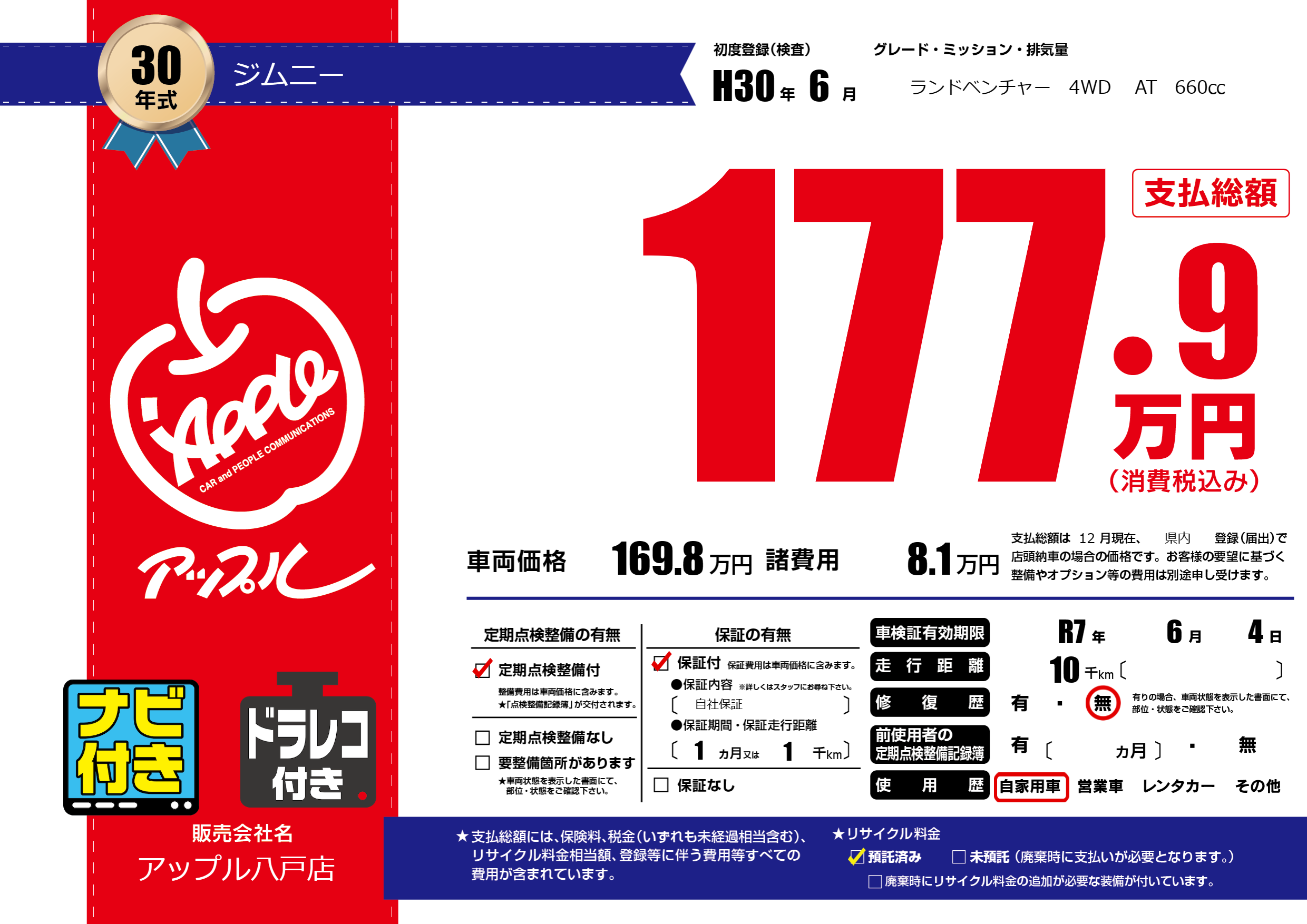 初年度登録 H30年6月
