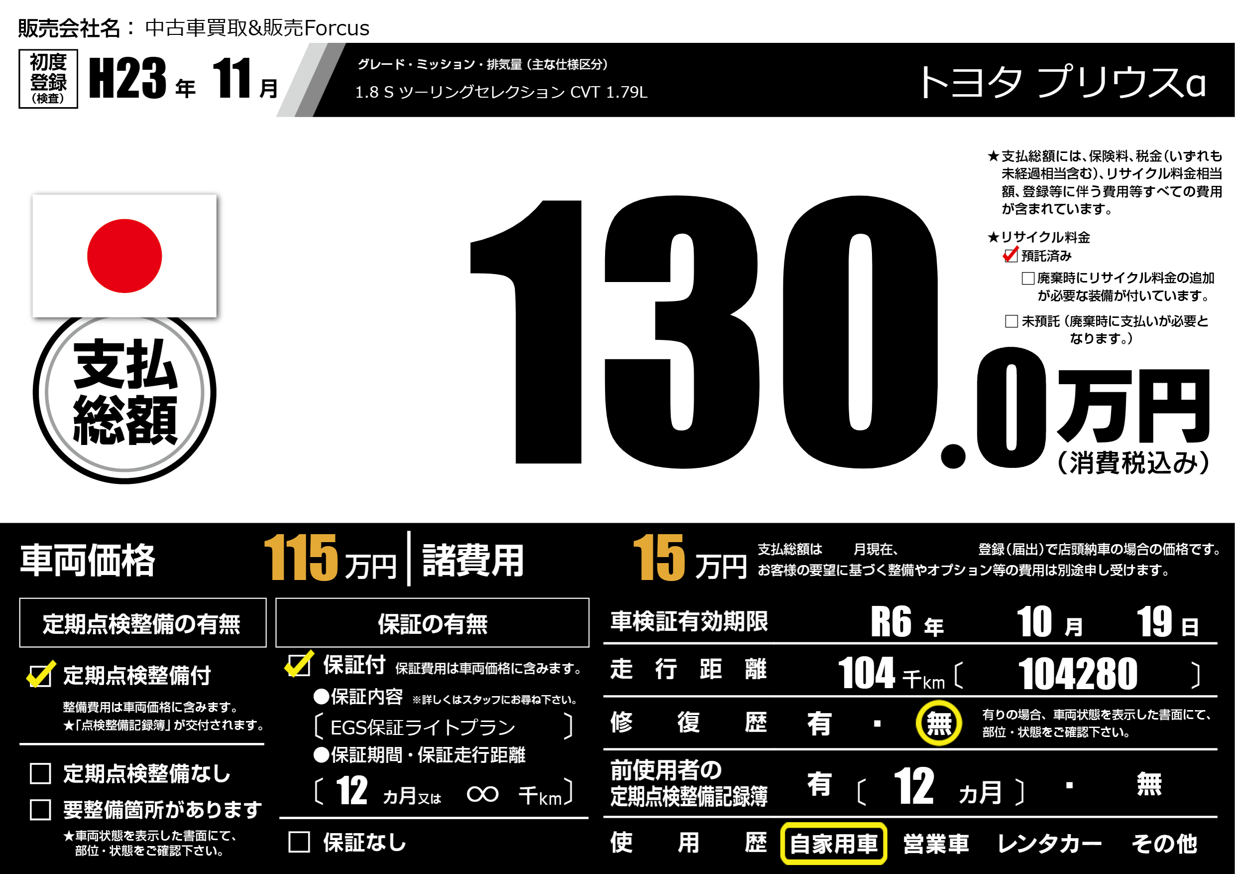 なし | 車検制限 | R6年10月19月 |