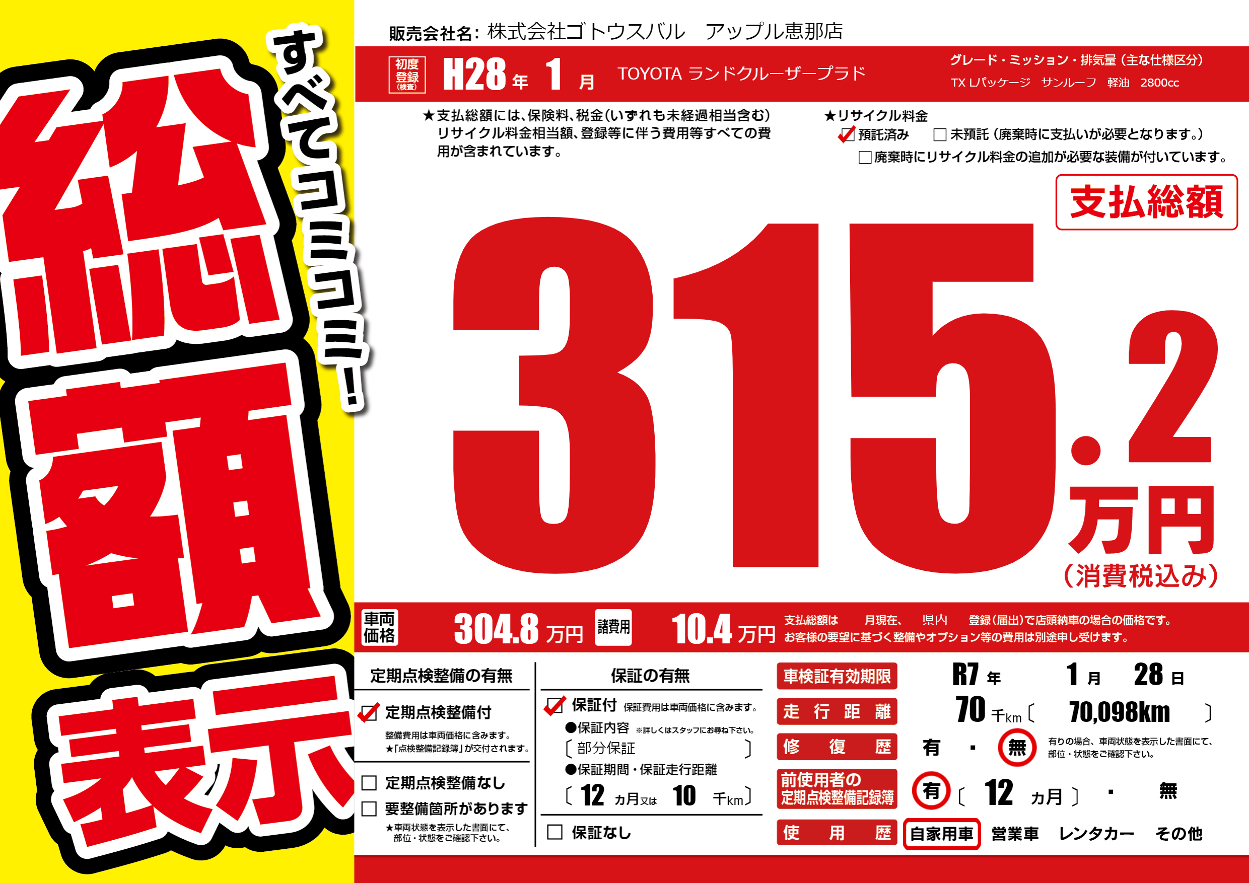 なし | 車検制限 | R7年1月28月 |