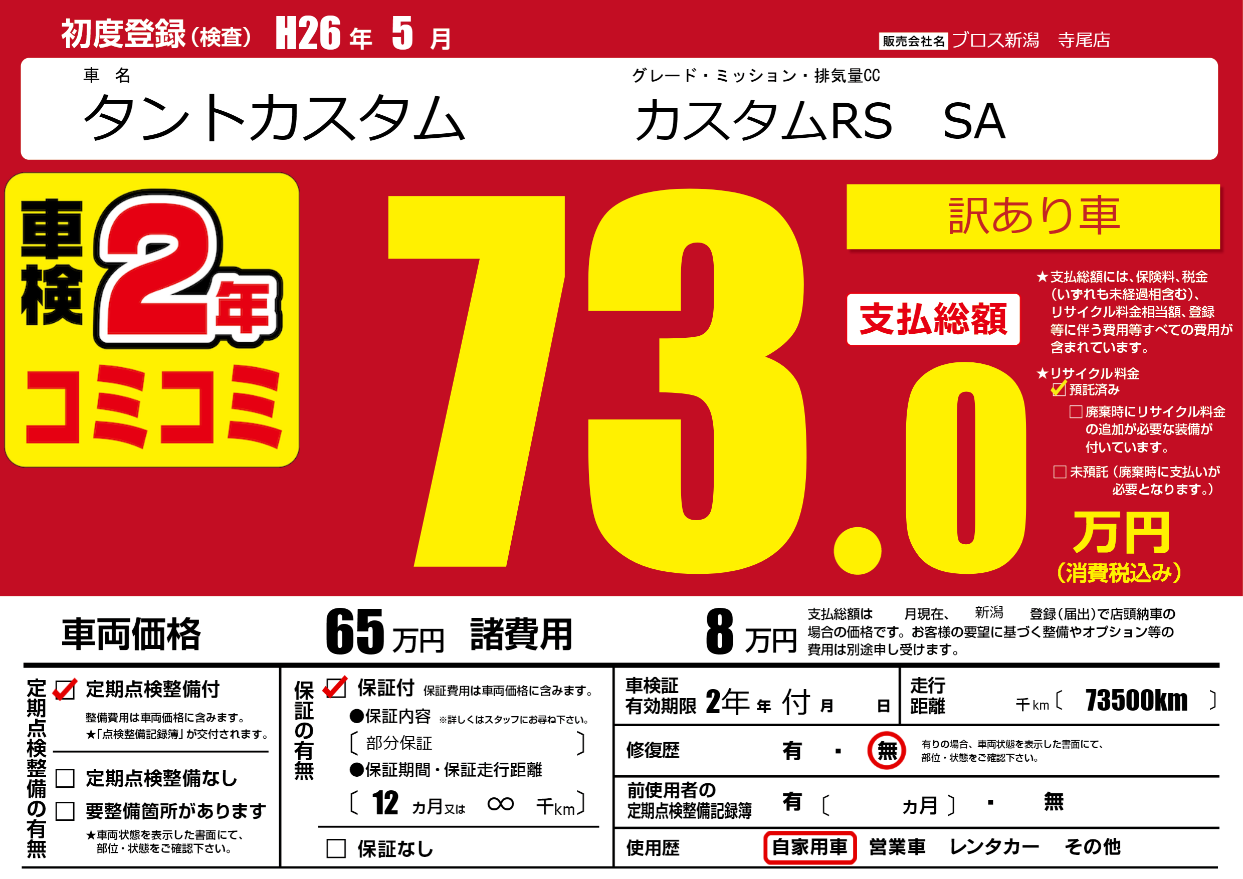 | 走行キロ | - | 初年度登録 | H26年5月 |