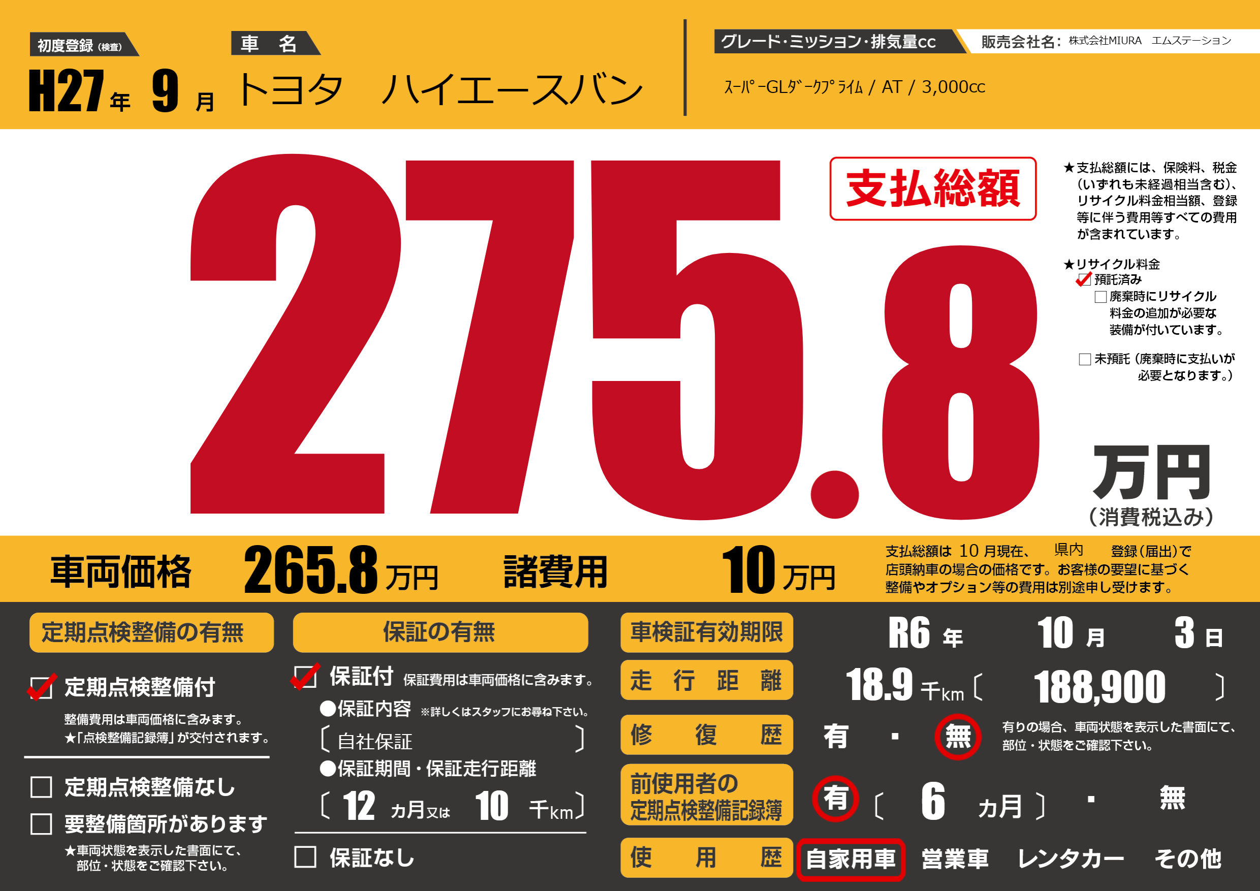 なし | 車検制限 | R6年10月3月 |