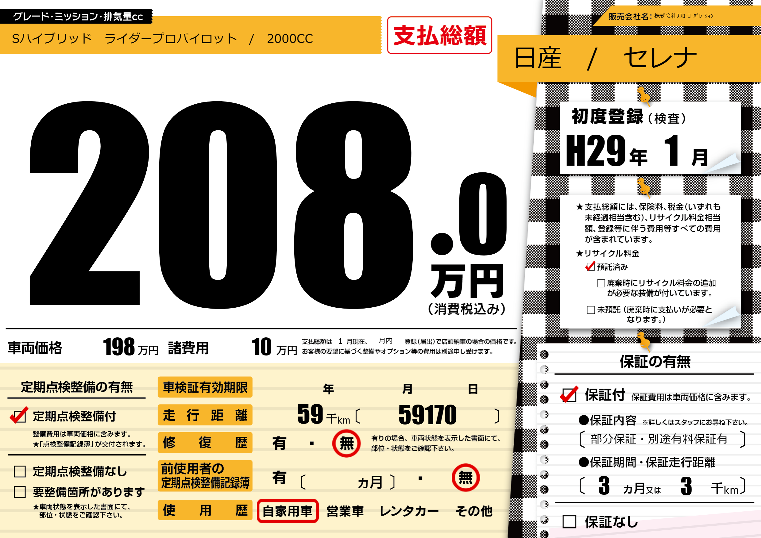 | 車名 | 日産 / セレナ | グレード ミッション 排気量 |