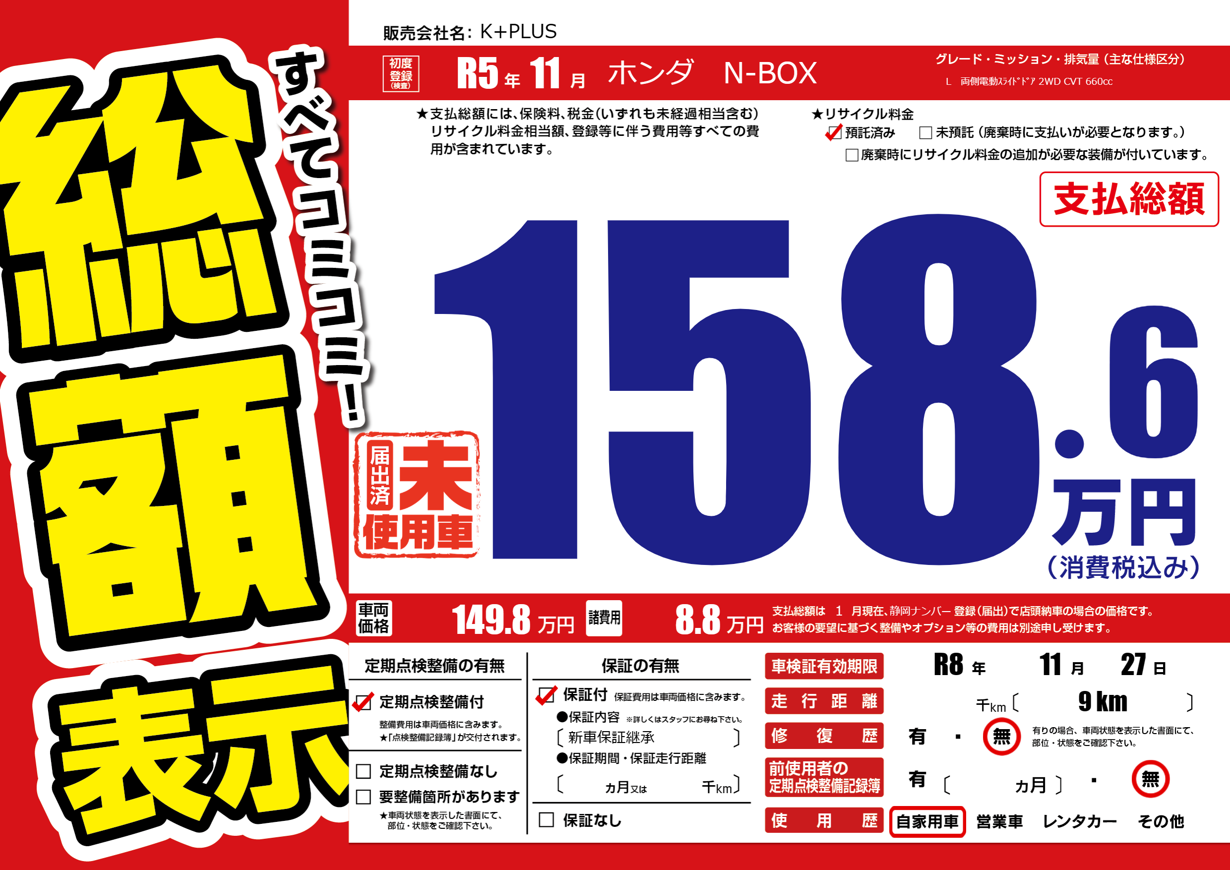 | 走行キロ | - | 初年度登録 | R5年11月 |