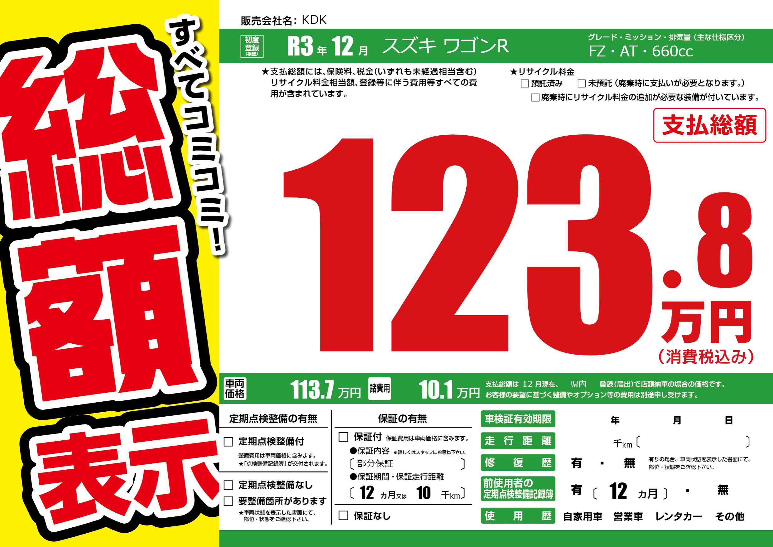 保証なし 保証内容(部分保証) 12ヶ月または(10)千kmまで |