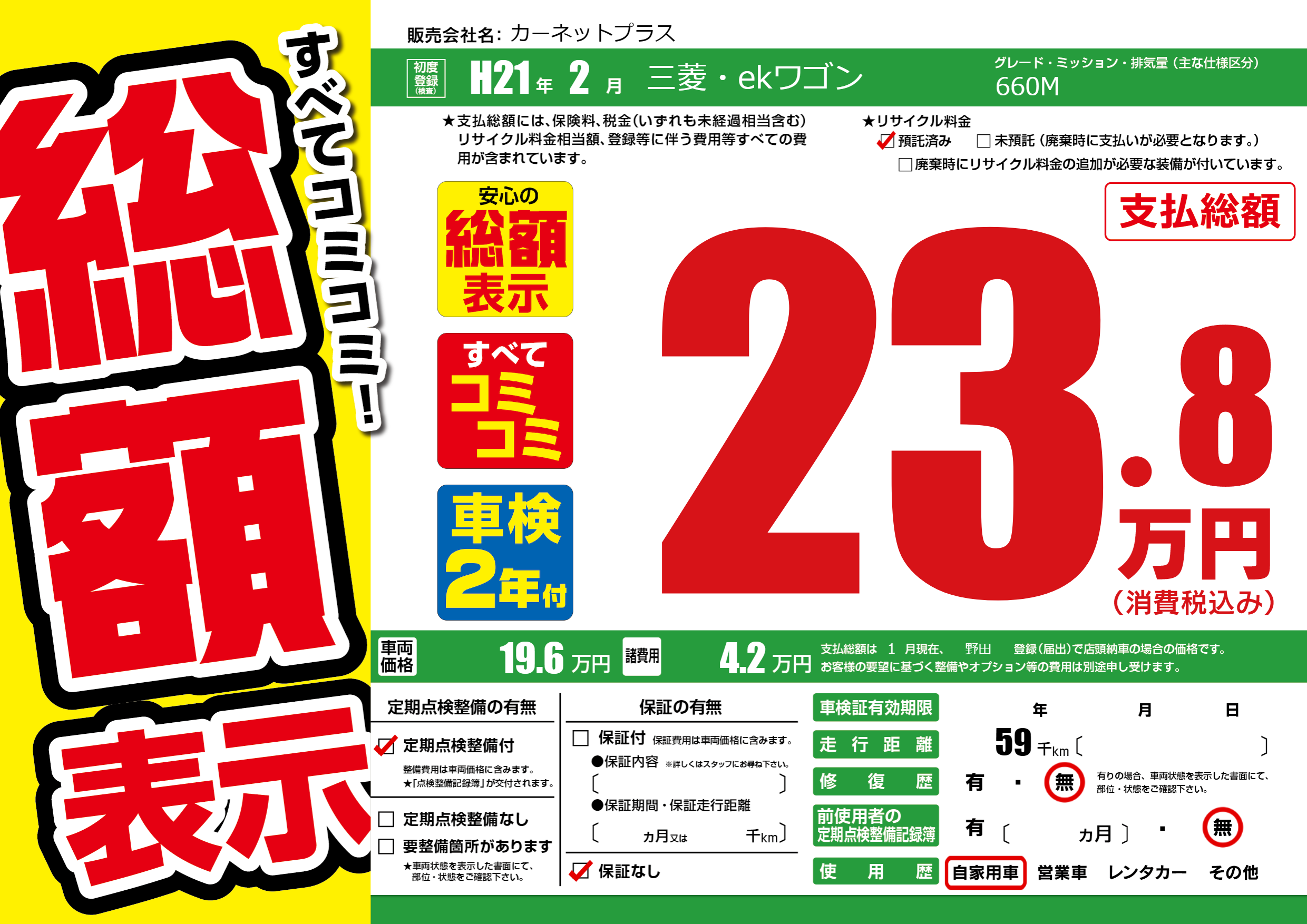 | 車名 | 三菱・ekワゴン | グレード ミッション 排気量 |