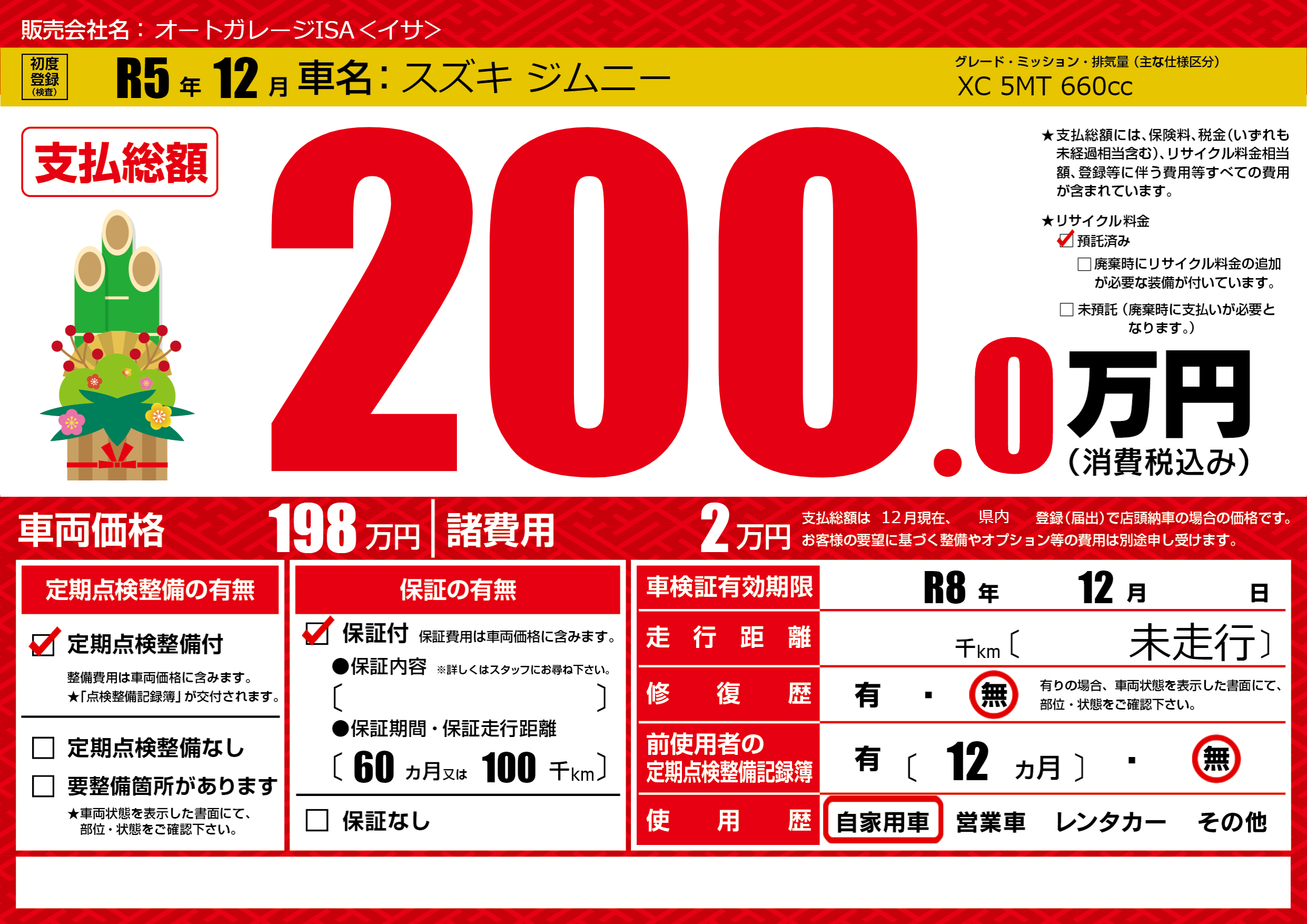 | 走行キロ | - | 初年度登録 | R5年12月 |