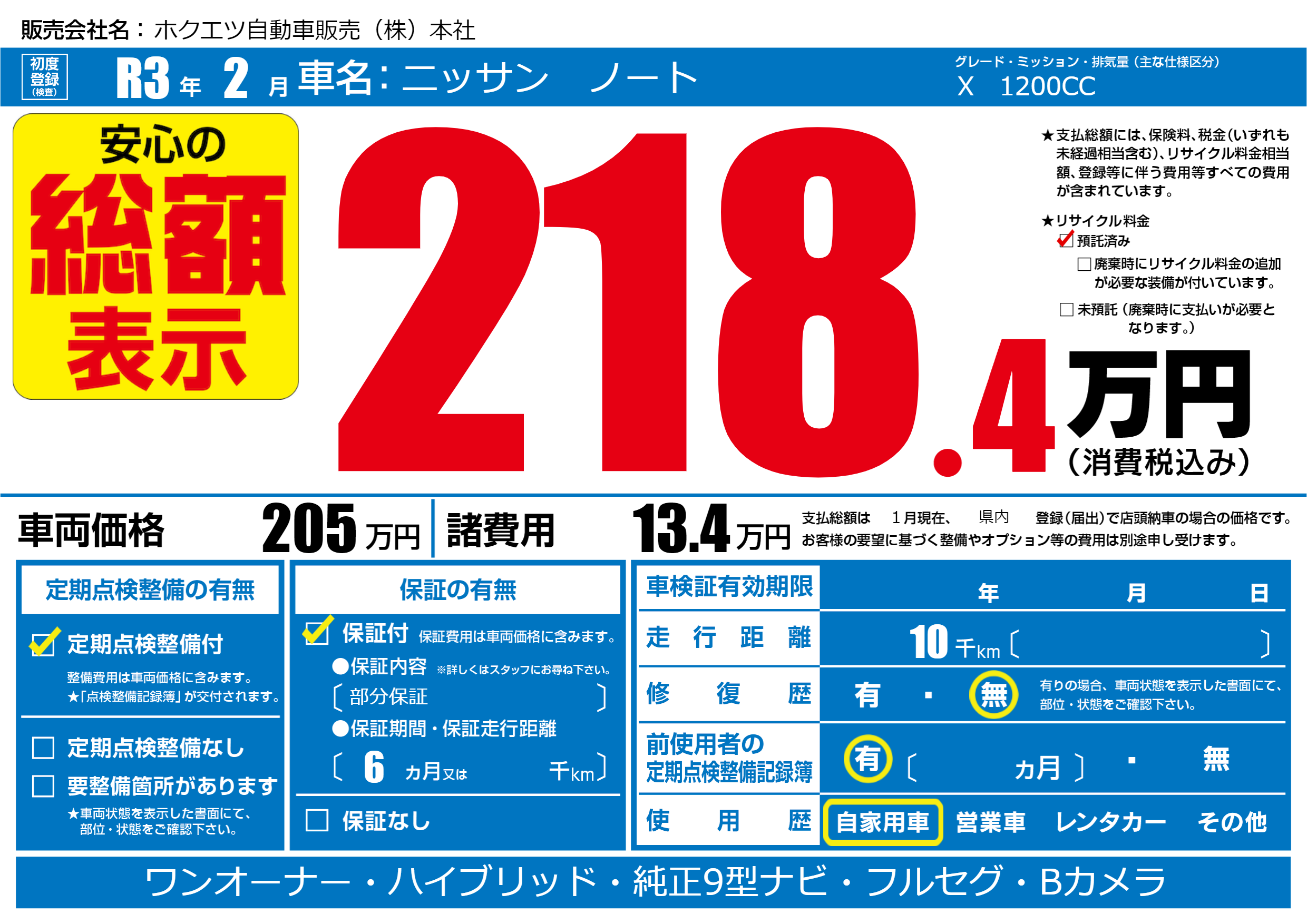| 車名 | ニッサン ノート | グレード ミッション 排気量 |