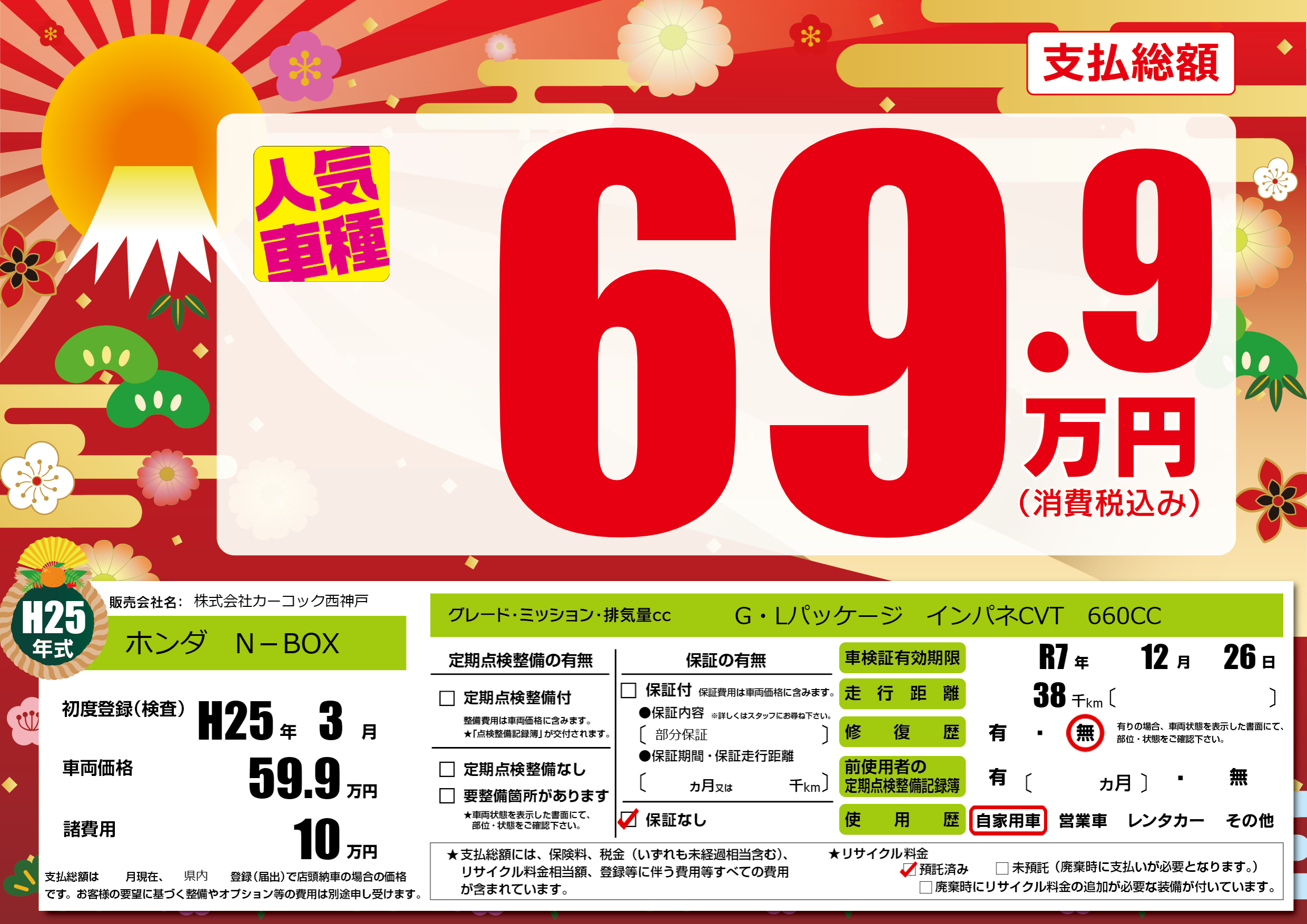 | 車検制限 | R7年 12月 26日 | ||