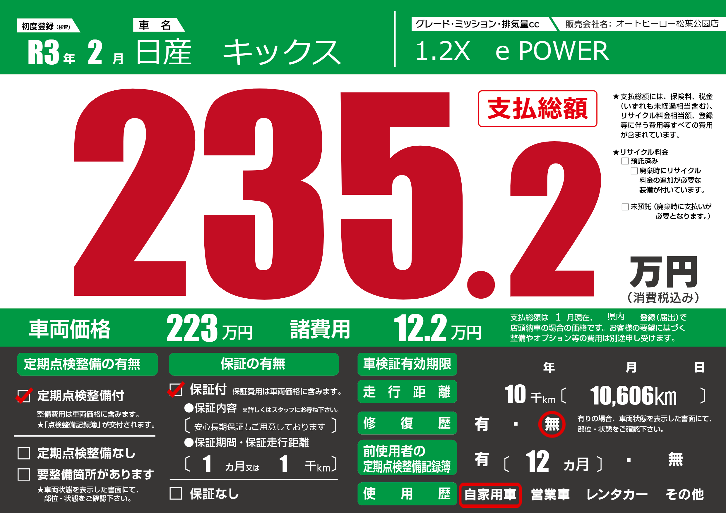| 走行キロ | 1万km | 初年度登録 | R3年2月 |