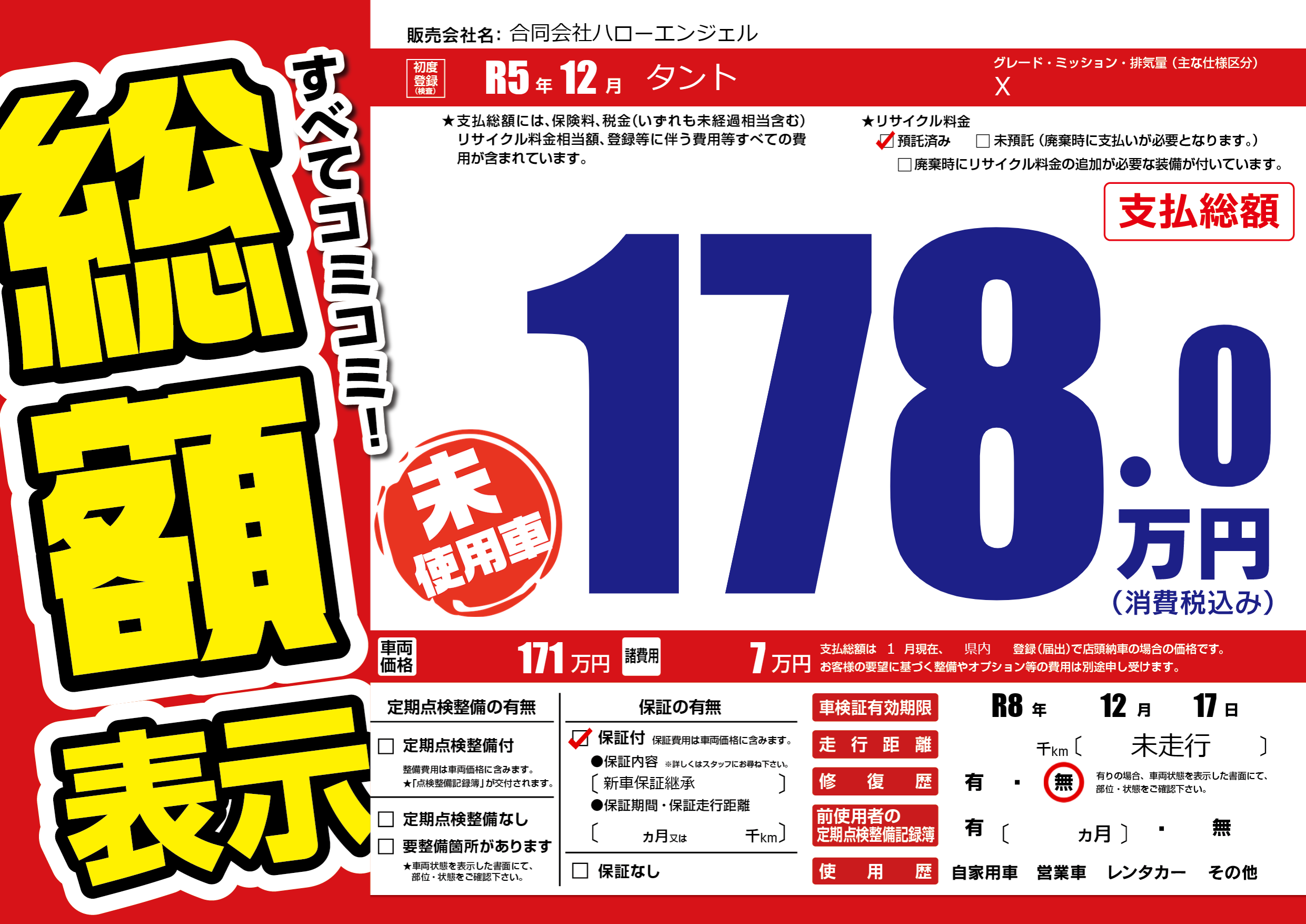なし | 車検制限 | R8年12月17月 |