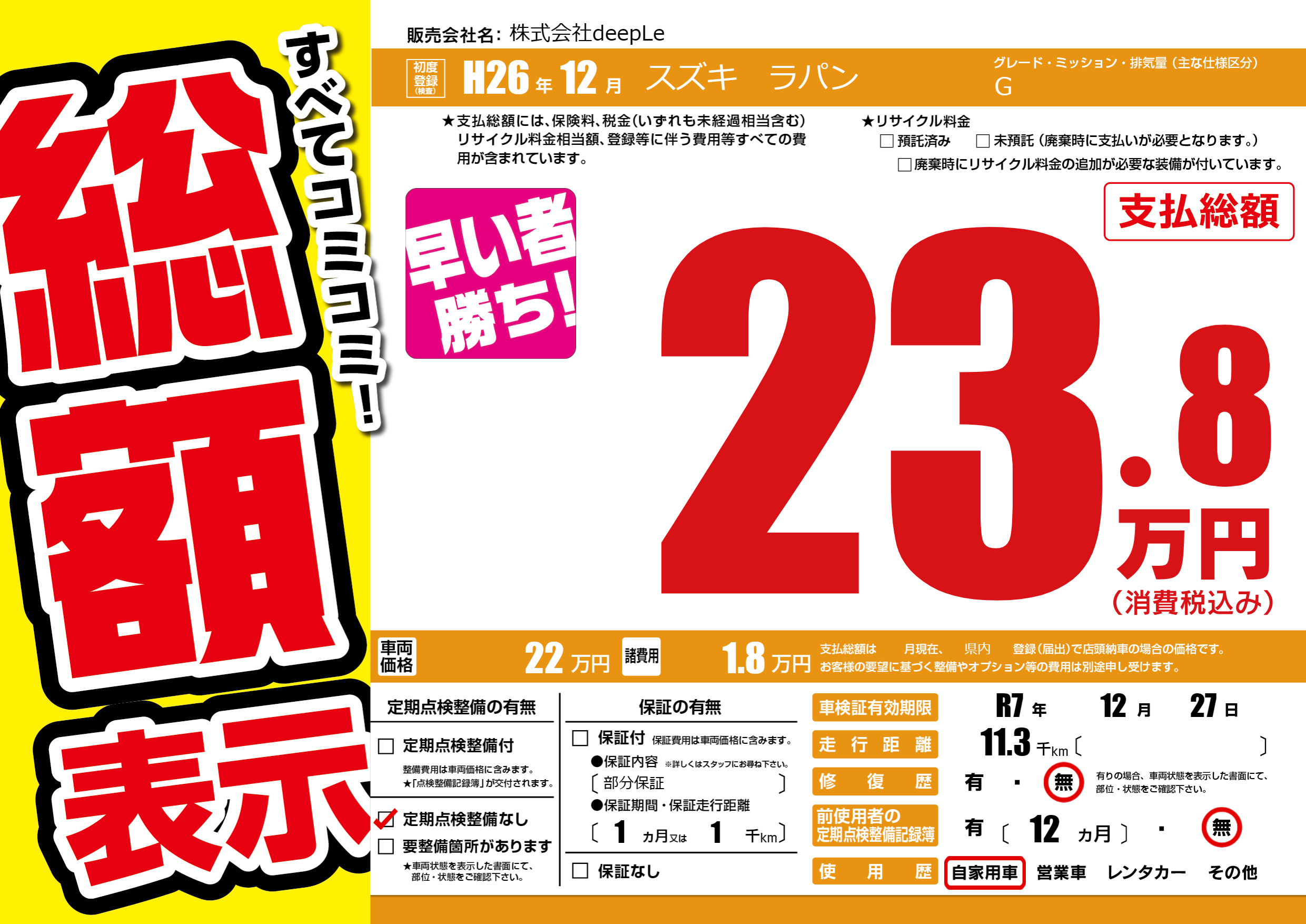 | 車名 | スズキ ラパン | グレード ミッション 排気量 |