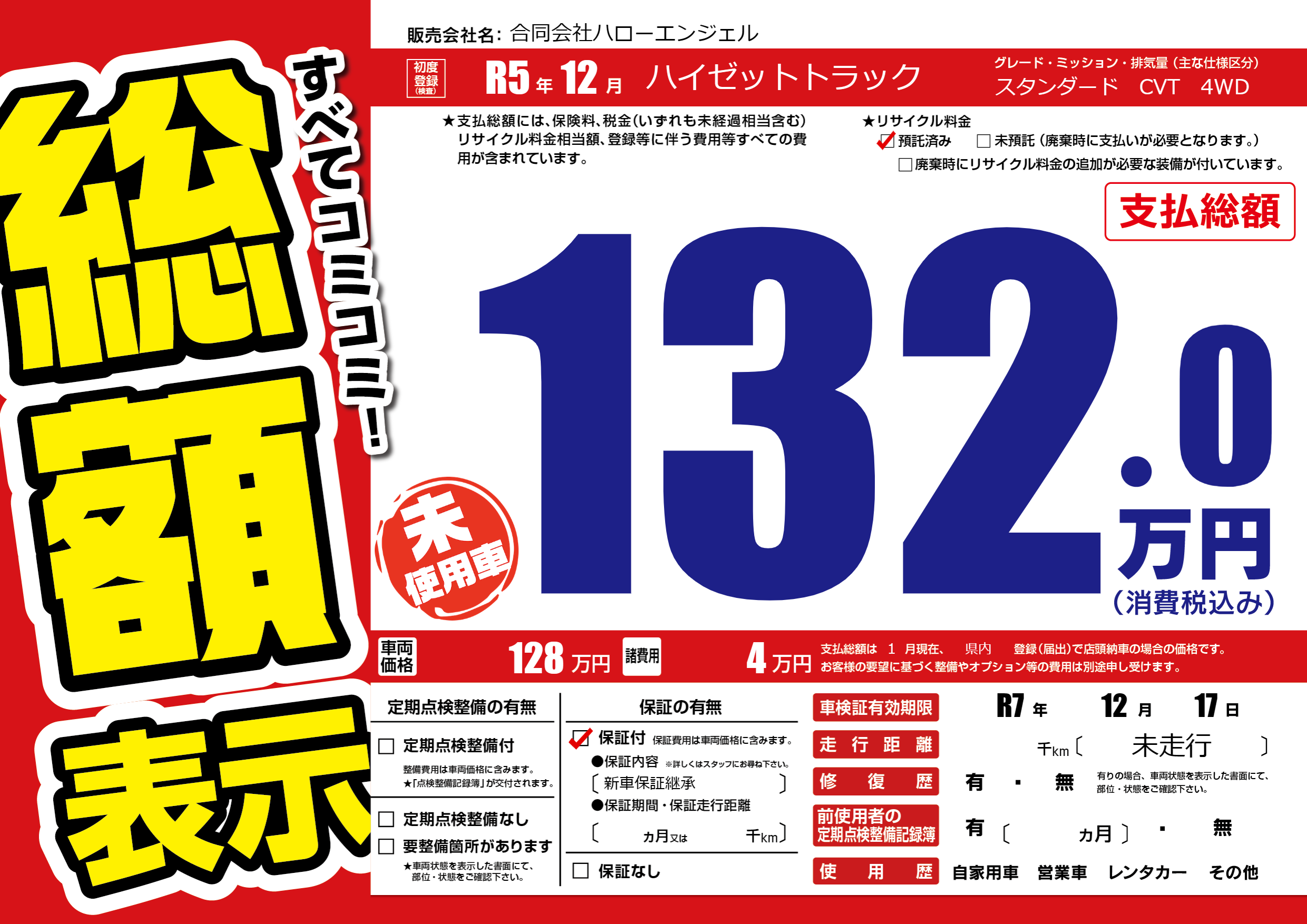 | 走行キロ | - | 初年度登録 | R5年12月 |