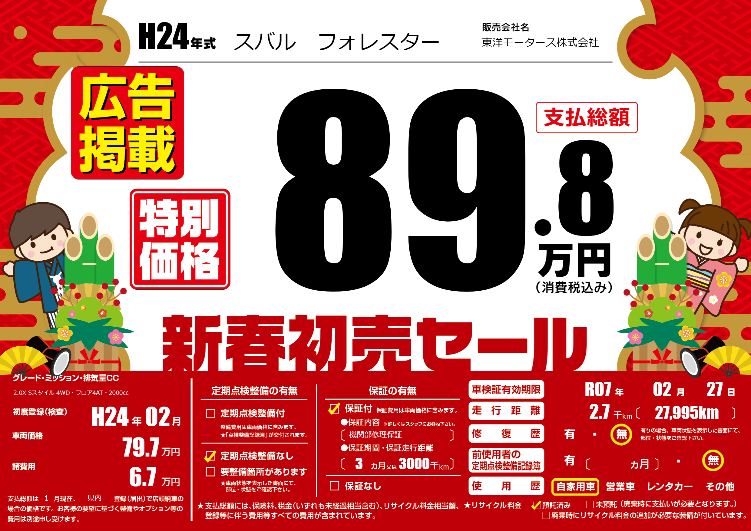 | 車名 | スバル フォレスター | グレード ミッション 排気量 |