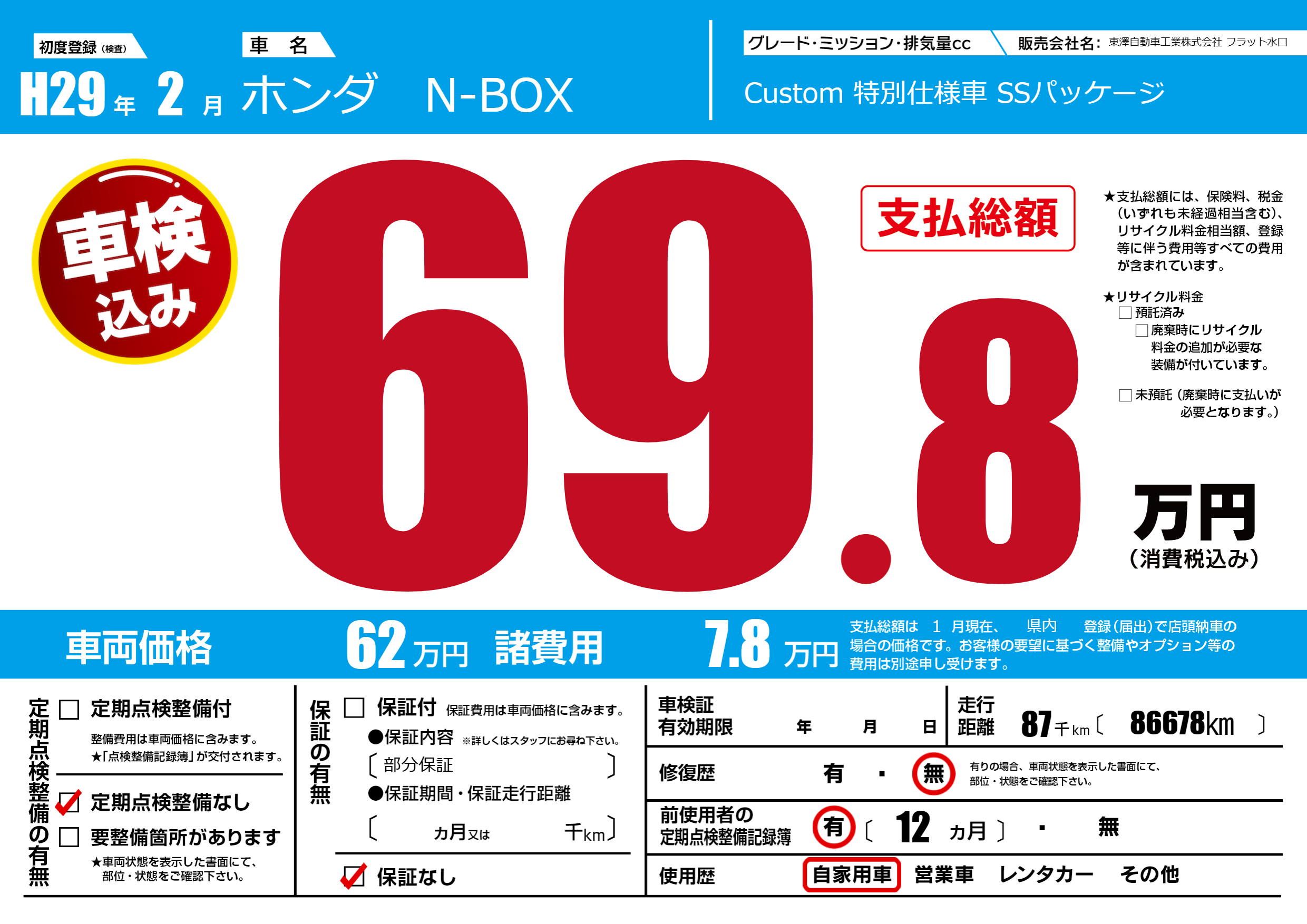 | 走行キロ | 8.7万km | 初年度登録 | H29年2月 |