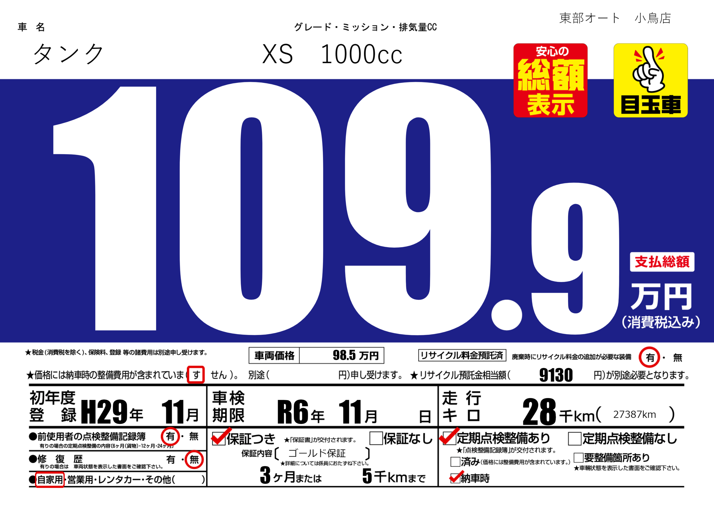 | 定期点検整備 | 定期点検整備あり 納車時あり | ||
