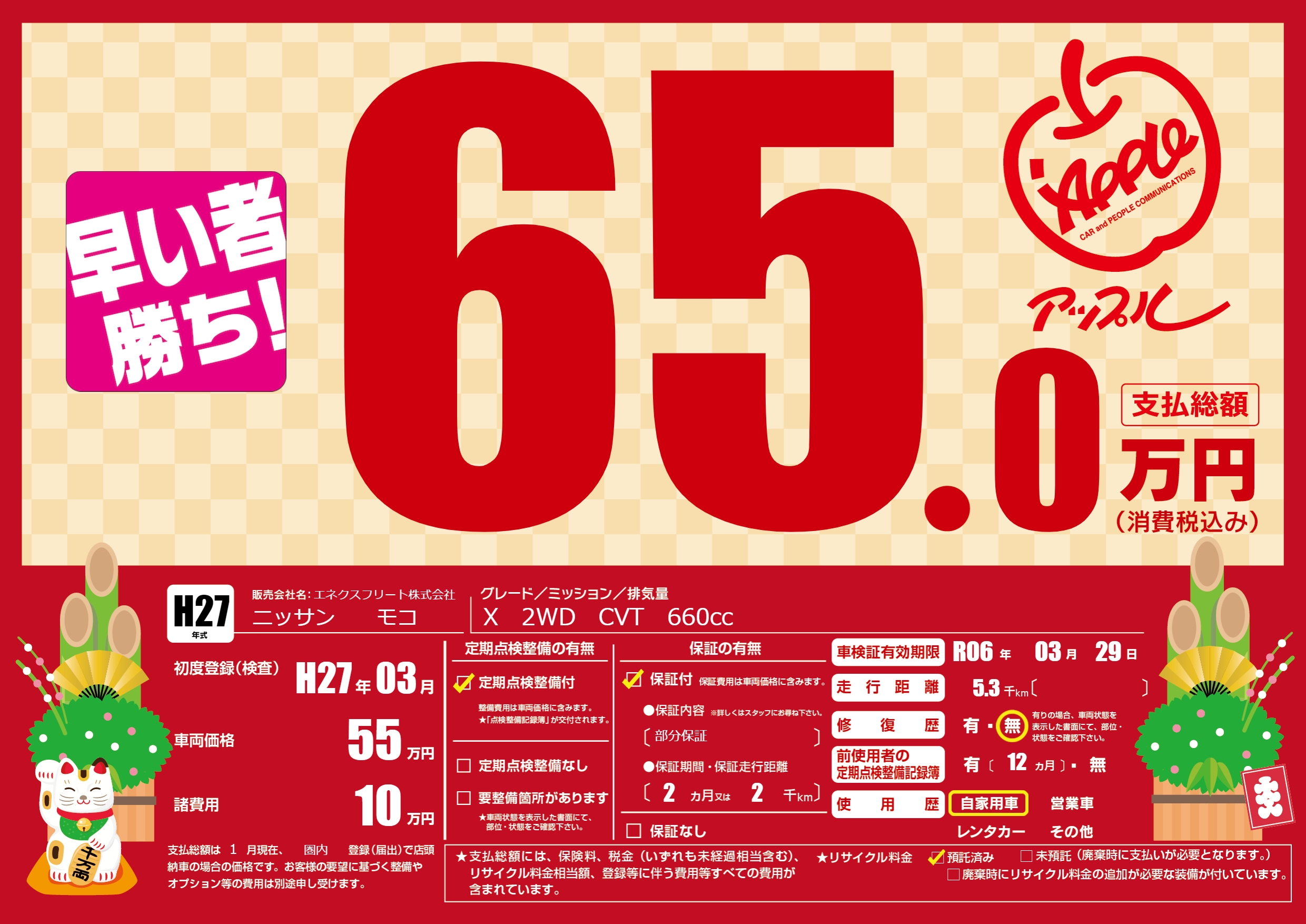 | 車名 | ニッサン モコ | グレード ミッション 排気量 |
