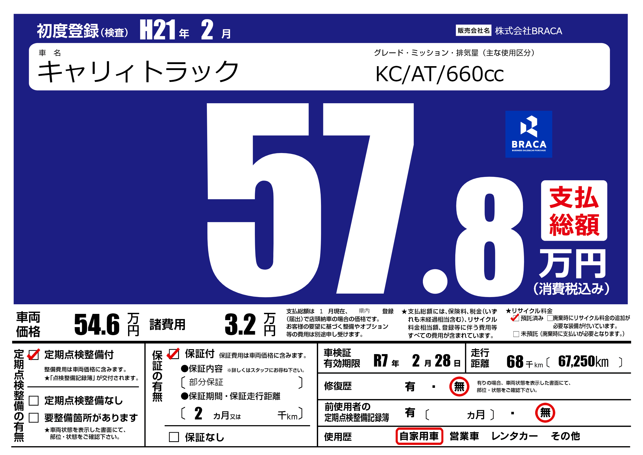 | 車検制限 | R7年 2月 28日 | ||
