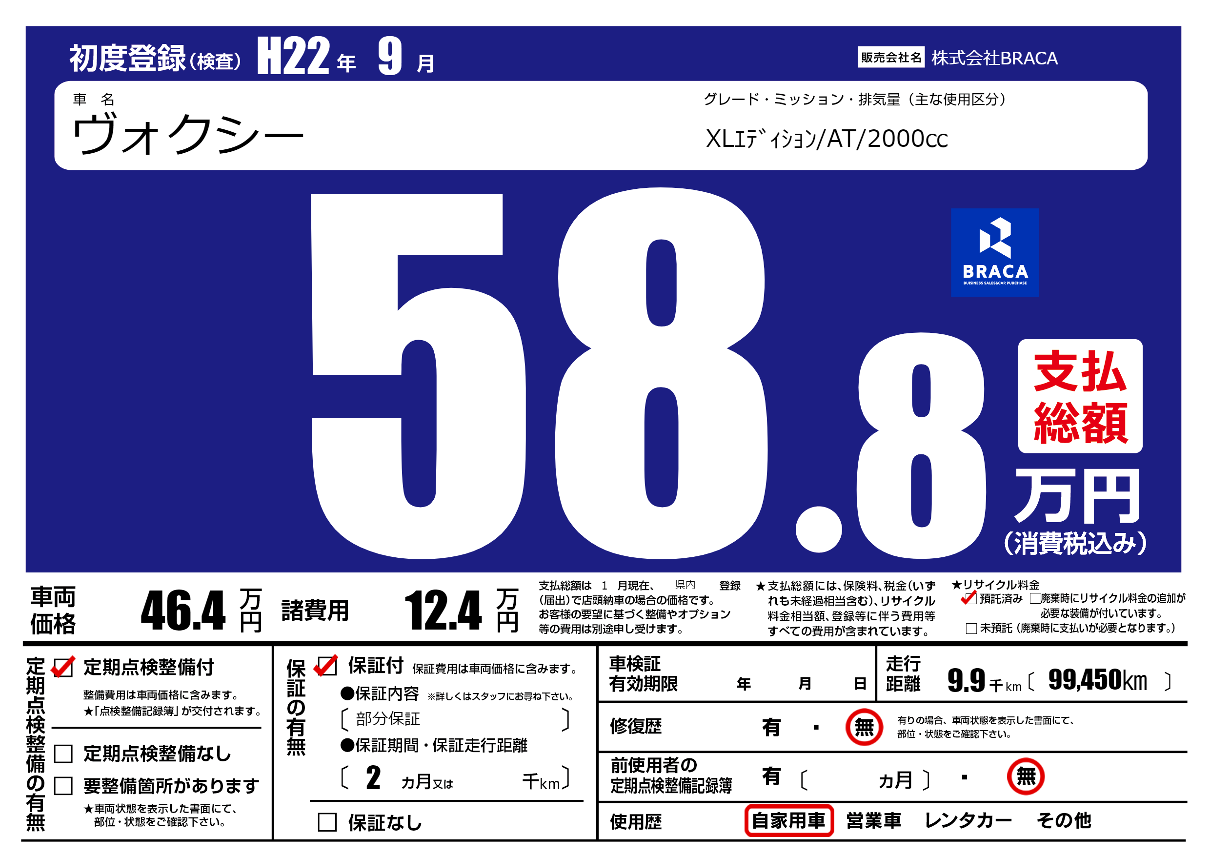 | 車名 | ヴォクシー | グレード ミッション 排気量 |