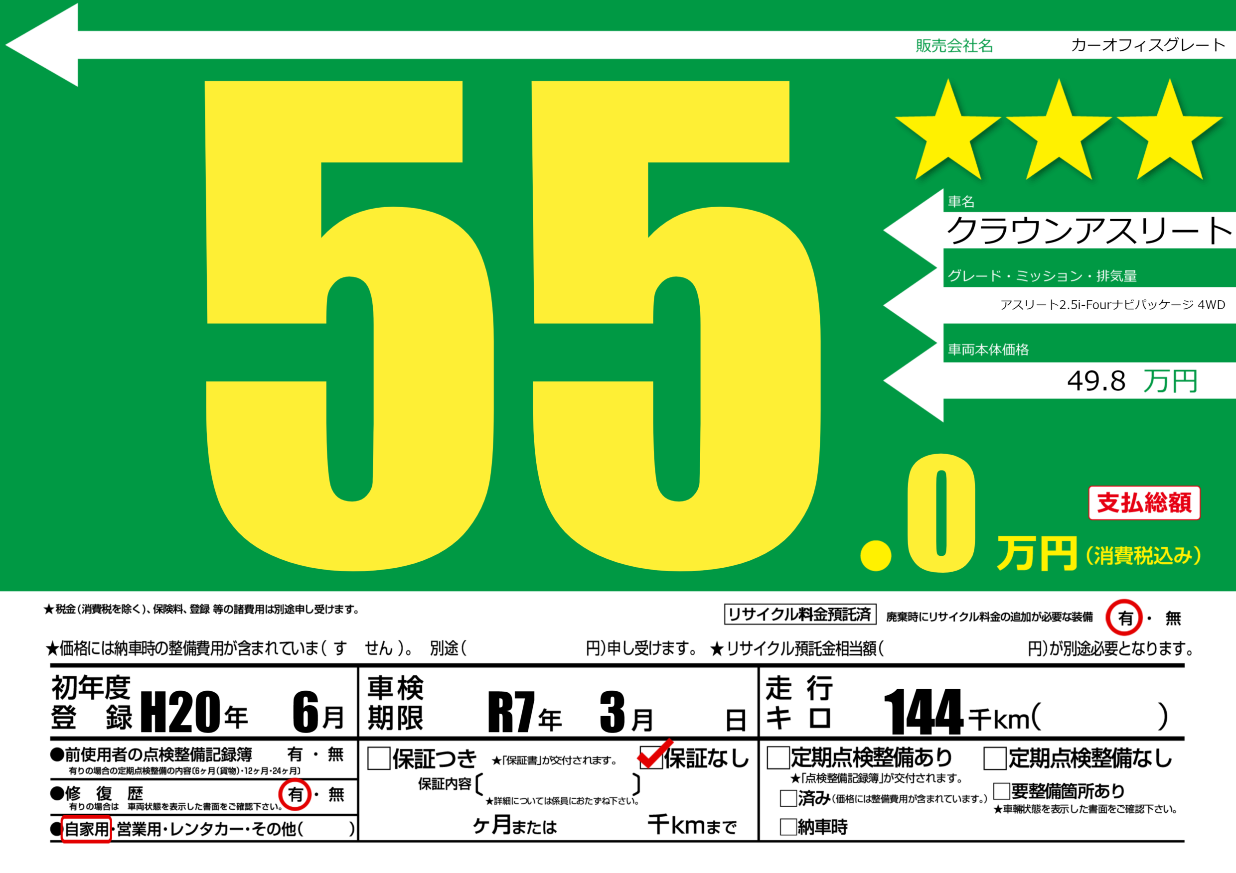 | 車名 | クラウンアスリート | グレード ミッション 排気量 |