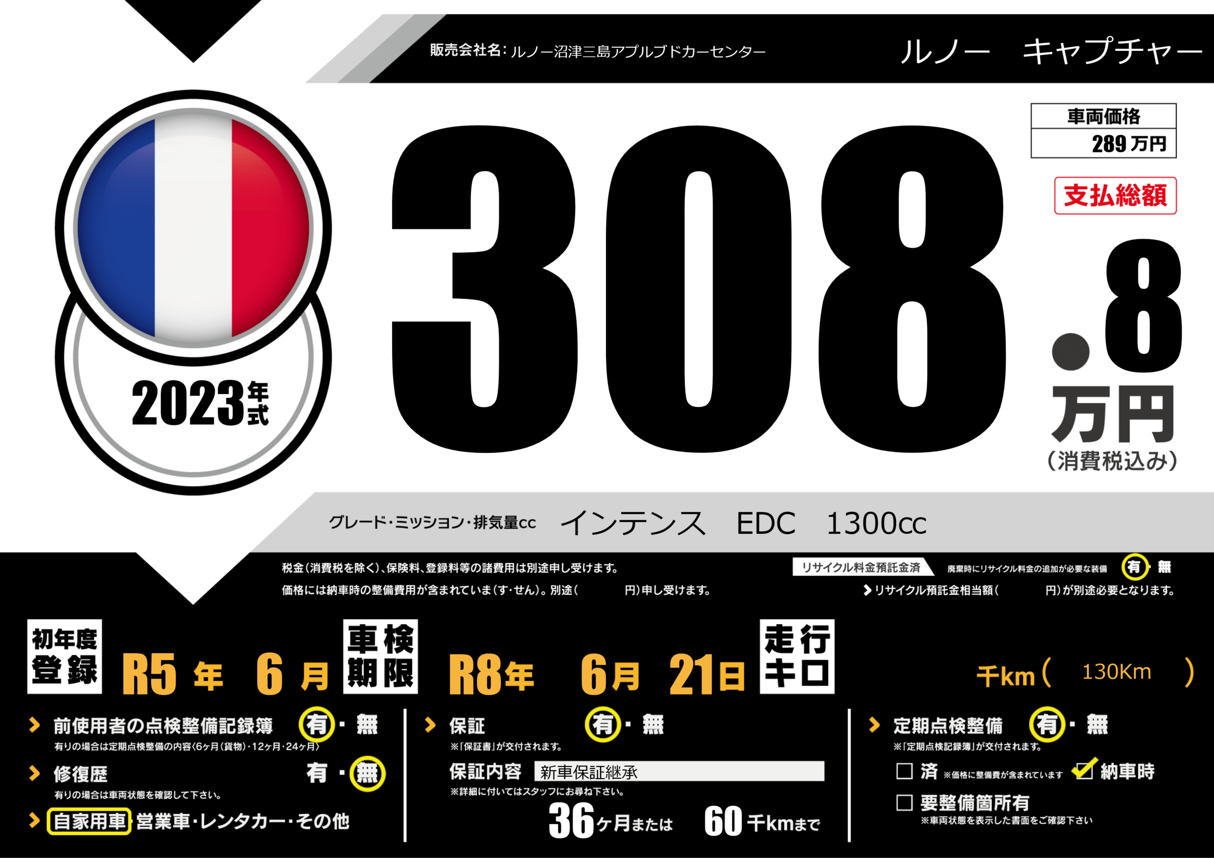 | 車名 | ルノー キャプチャー | グレード ミッション 排気量 |