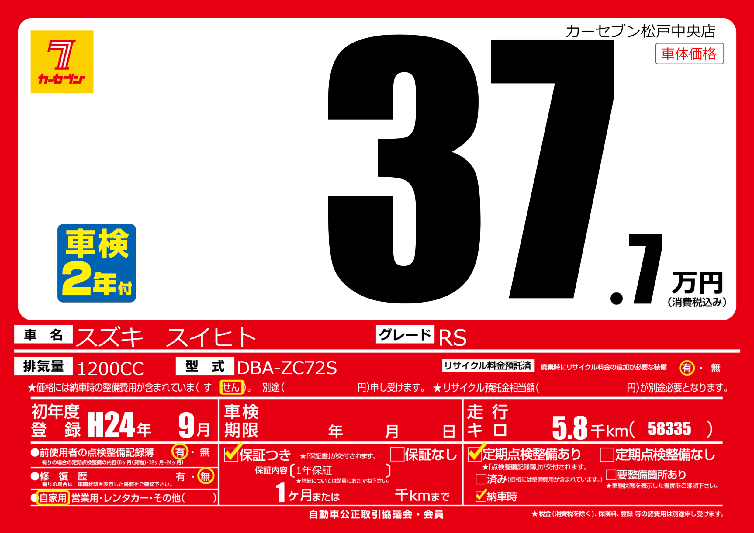 | 初年度登録 | H24年9月 | ||