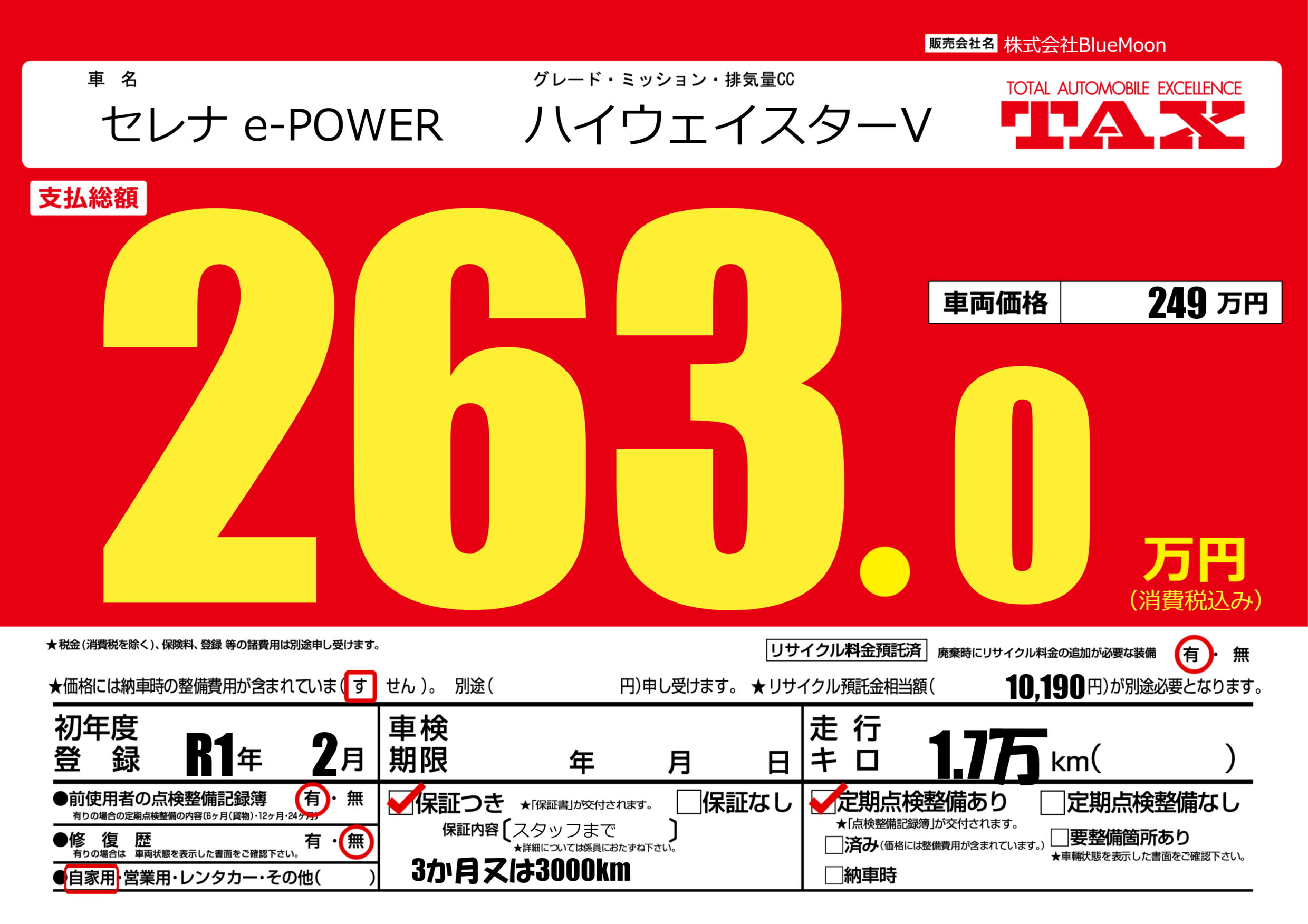 | 車名 | セレナ e-POWER | グレード ミッション 排気量 |