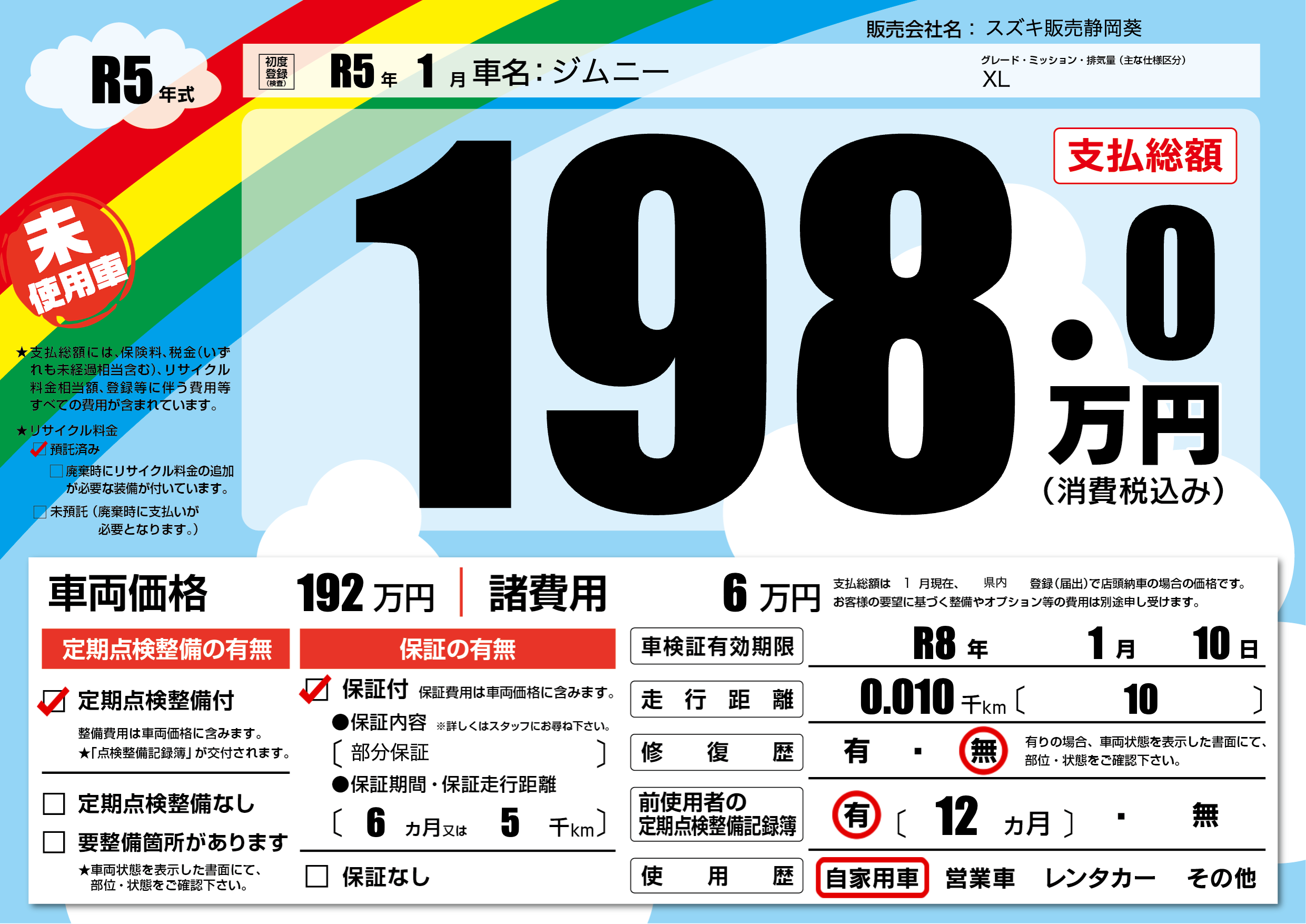 なし | 車検制限 | R8年1月10月 |