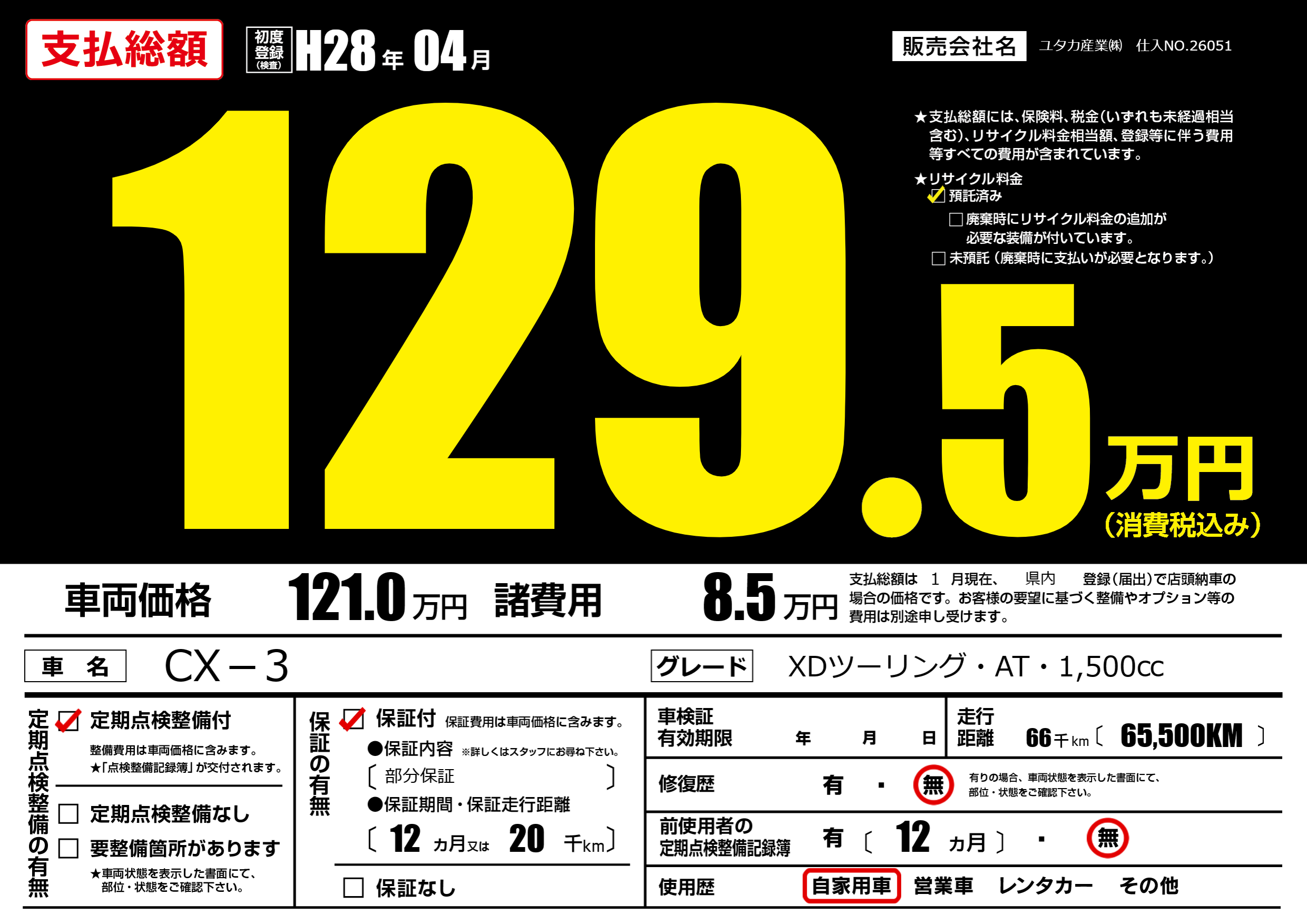 | 定期点検整備 | 定期点検整備あり | ||