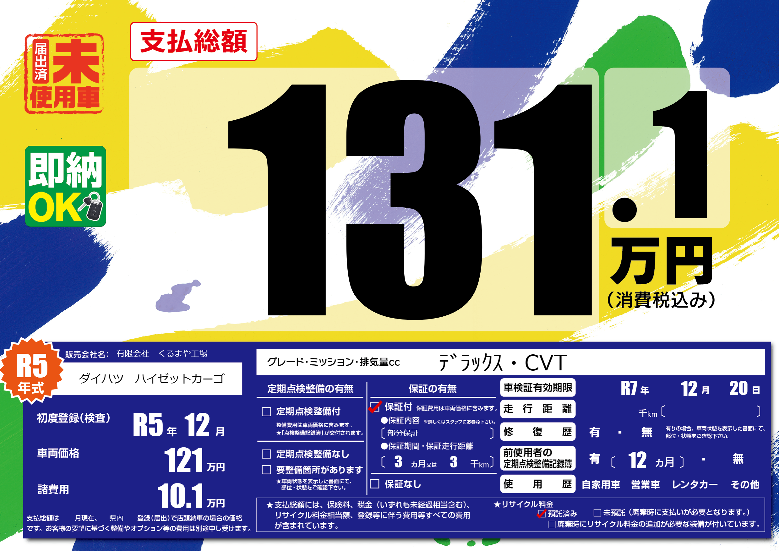 | 走行キロ | - | 初年度登録 | R5年12月 |