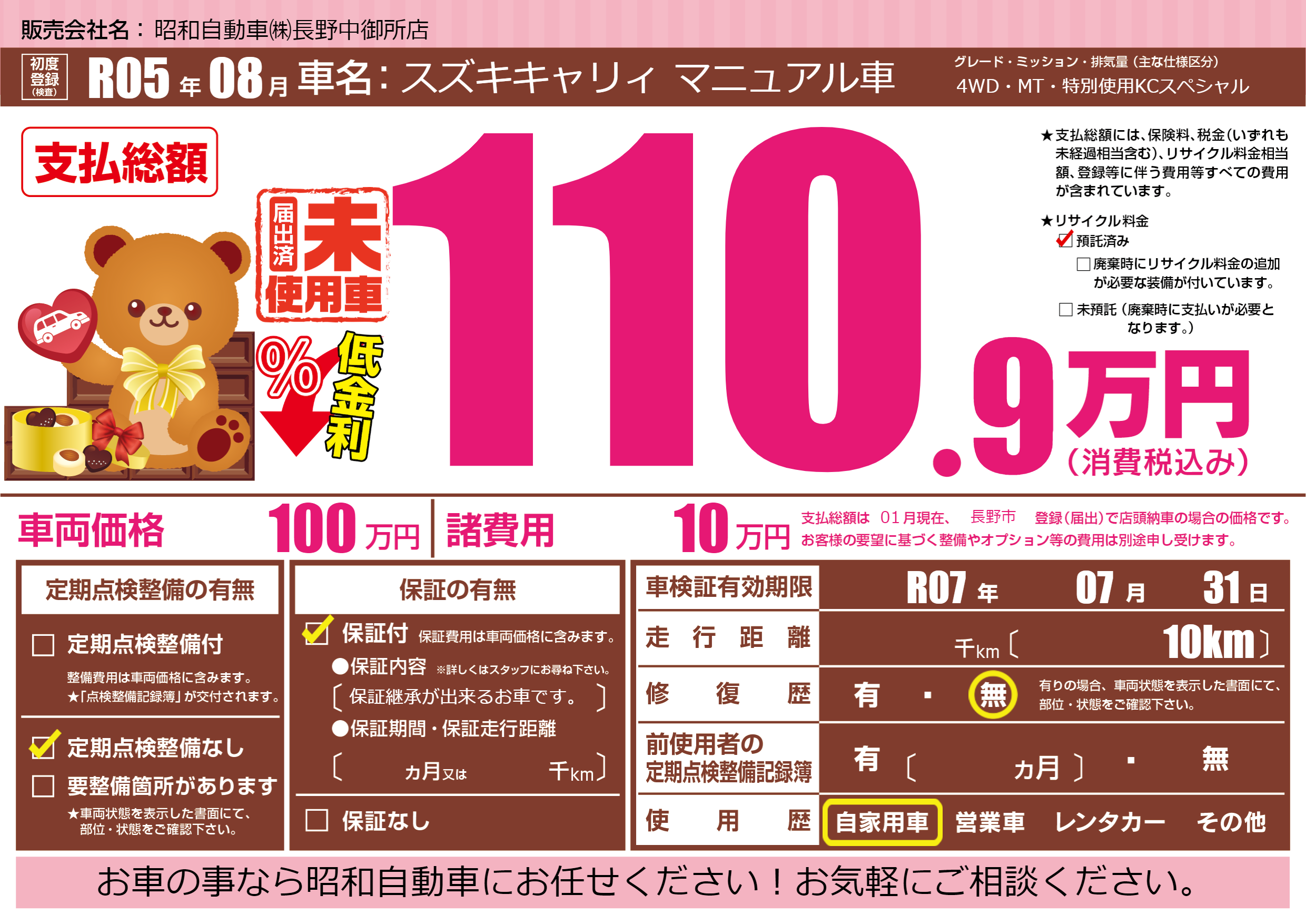 | 車名 | スズキキャリィ マニュアル車 | グレード ミッション 排気量 |