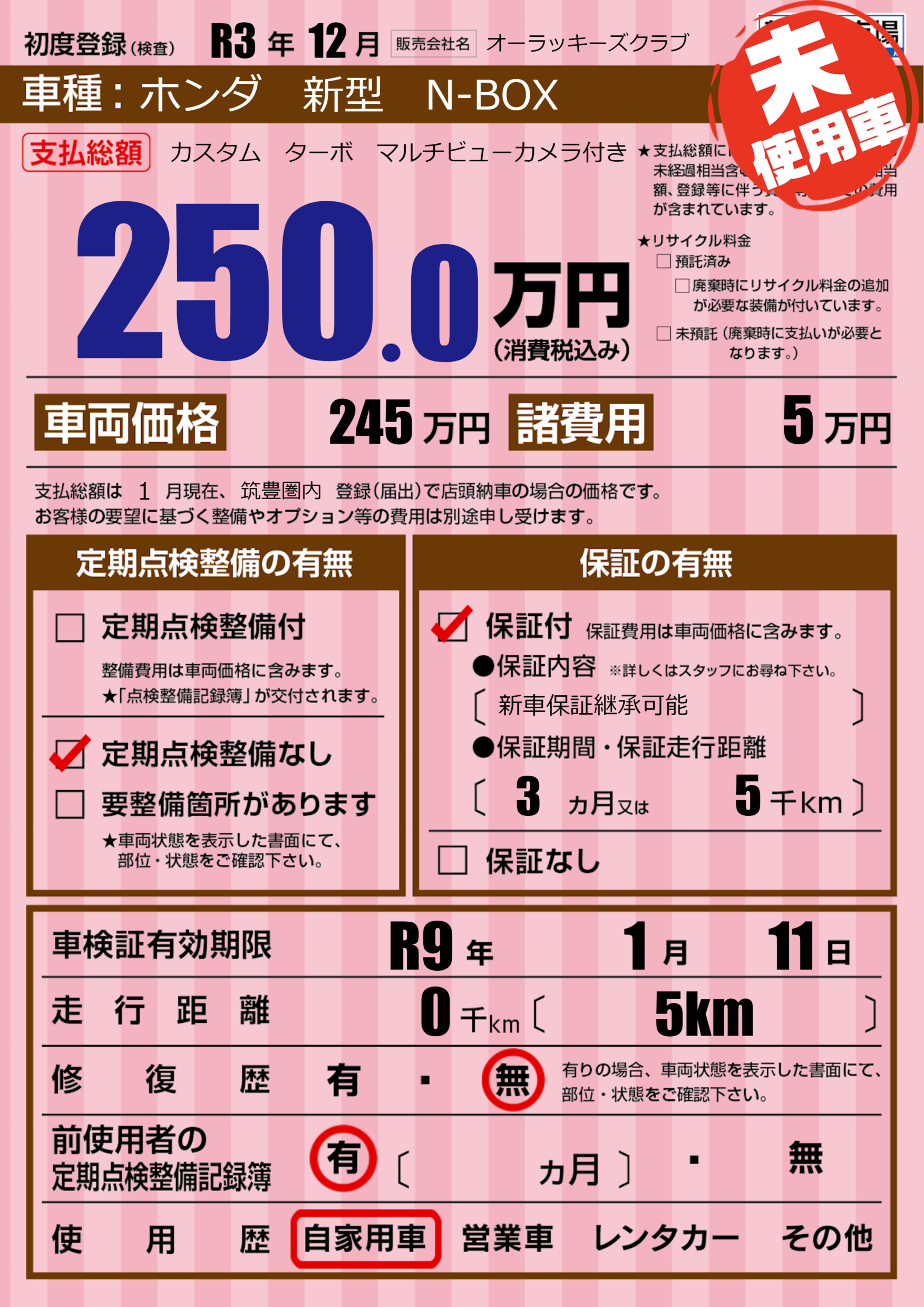 なし | 車検制限 | R9年1月11月 |