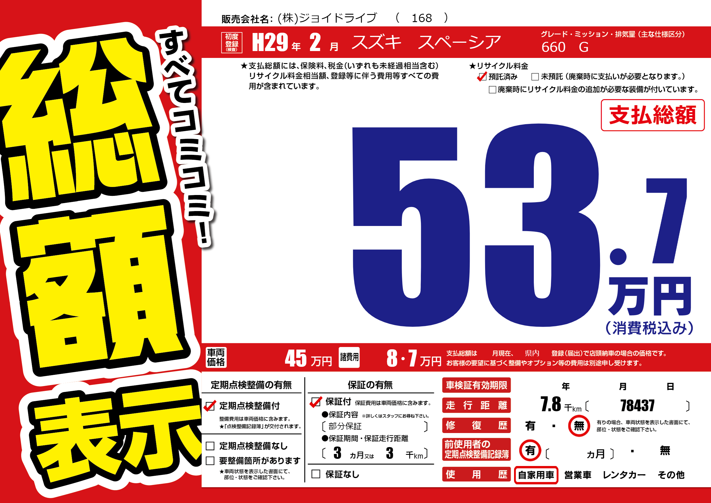 | 車検制限 | - 年 - 月 - 日 | ||