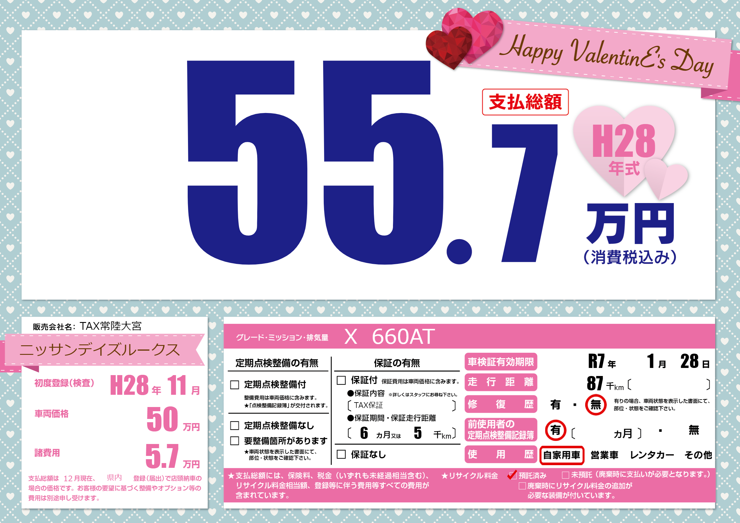 | 車名 | ニッサンデイズルークス | グレード ミッション 排気量 |